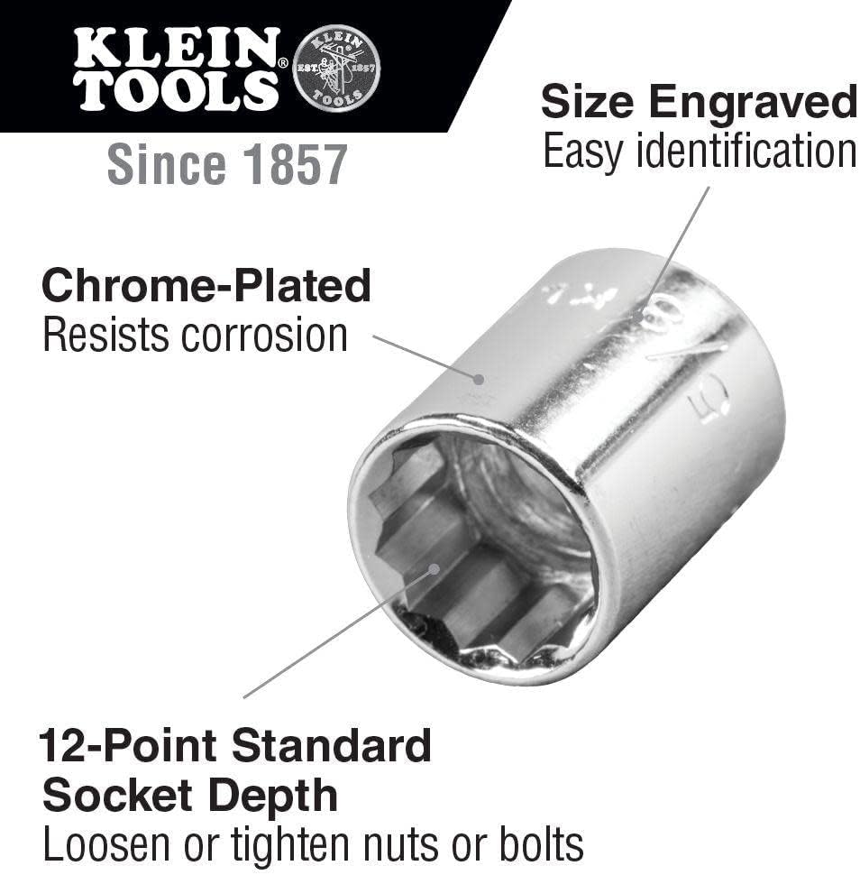 Klein Tools 65801 1/2-Inch Standard 12-Point Socket, 1/2-Inch Drive
