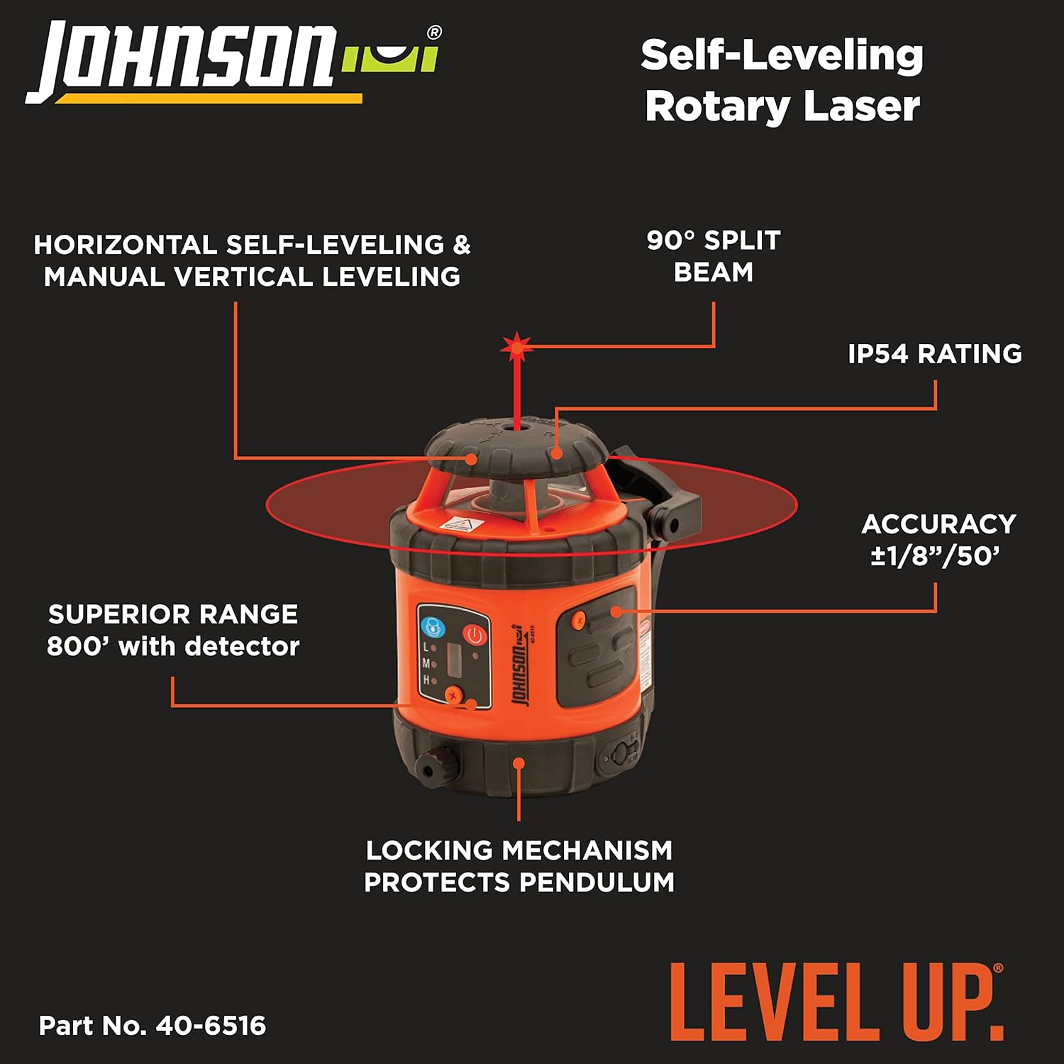 ROTARY LASER LEVEL: This Johnson Self Leveling Kit is ideal for various indoor and outdoor jobs. Perfect for small jobsites; this rotary tool self-levels in the horizontal plane and levels manually in the vertical plane.