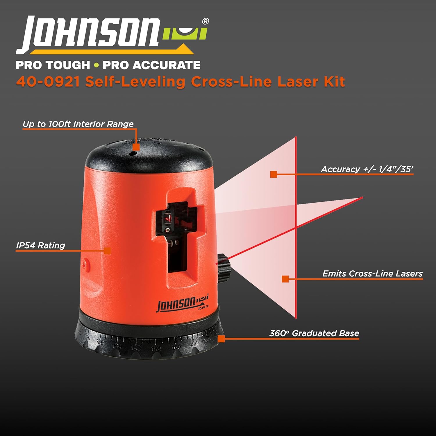 PRODUCT SPECIFICATIONS: This red cross line level has a self-leveling range of +/- 6 degrees. It has an interior range up to 100 ft. depending upon light conditions. The level measures 19" x 10"