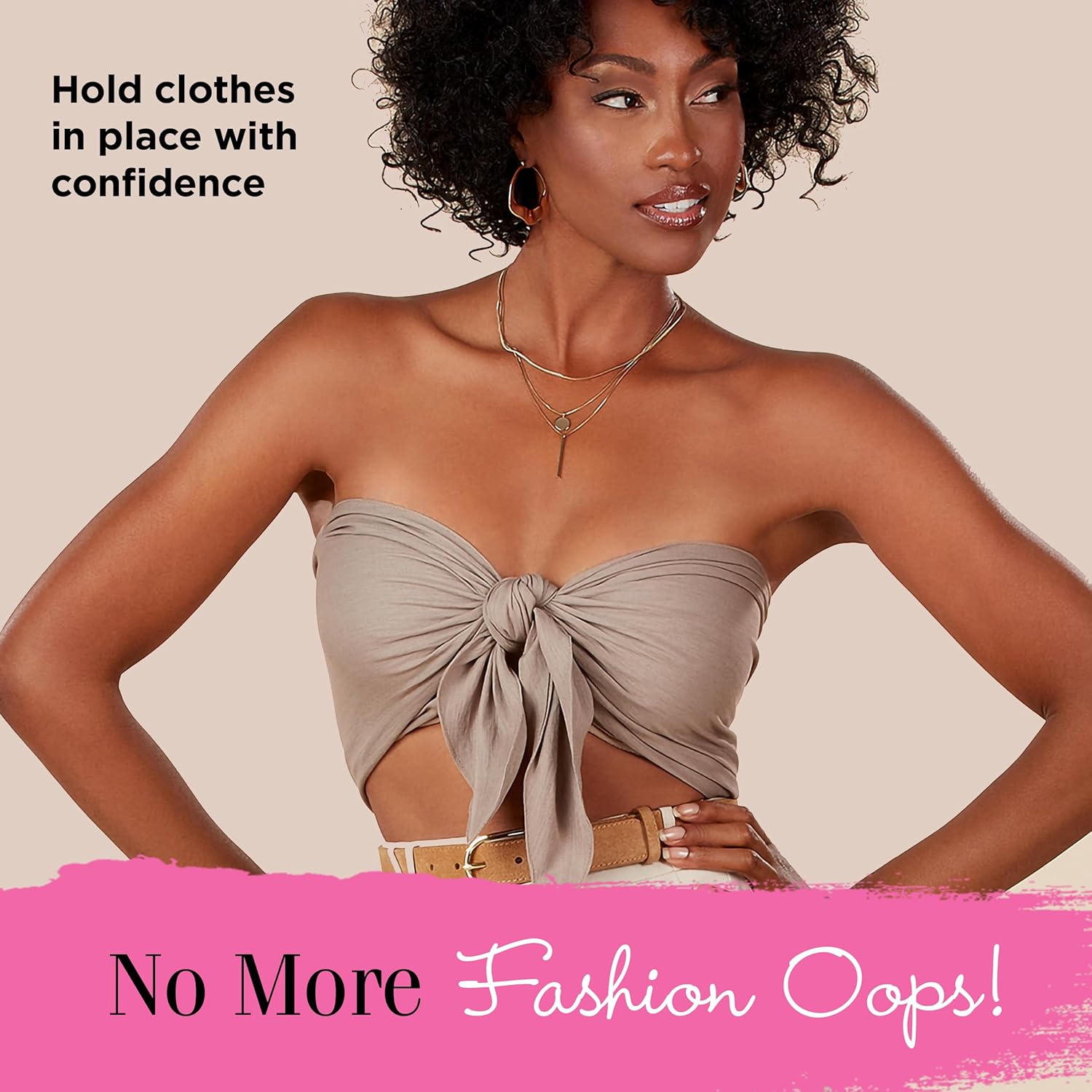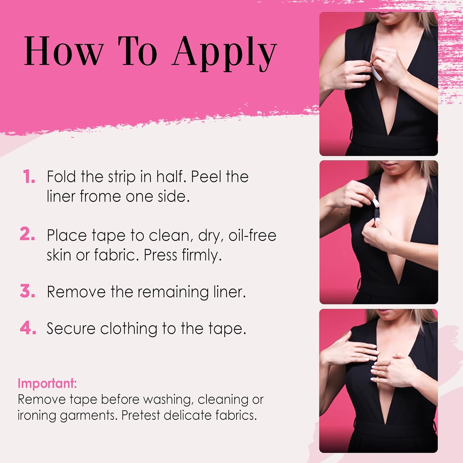 Fashion Freedom: Unleash your style potential; With this handy double sided tape for clothes, it's easy to secure plunging necklines, style off-shoulder dresses, and more without ironing or sewing