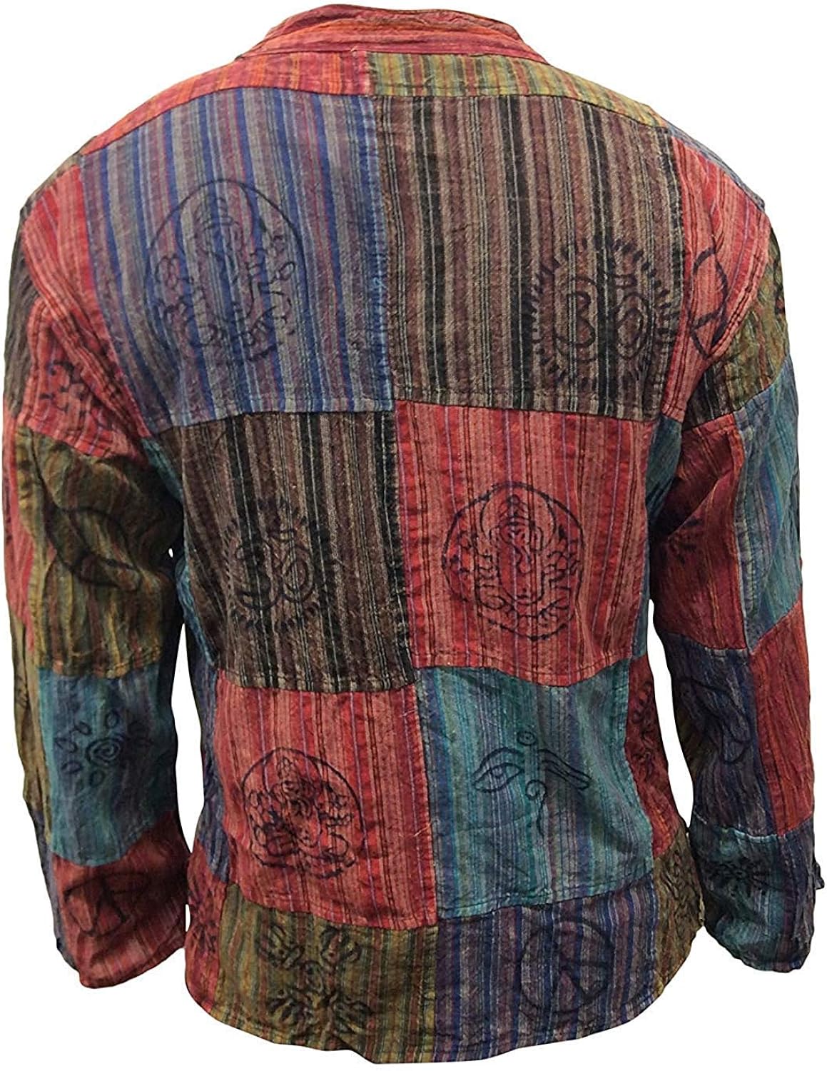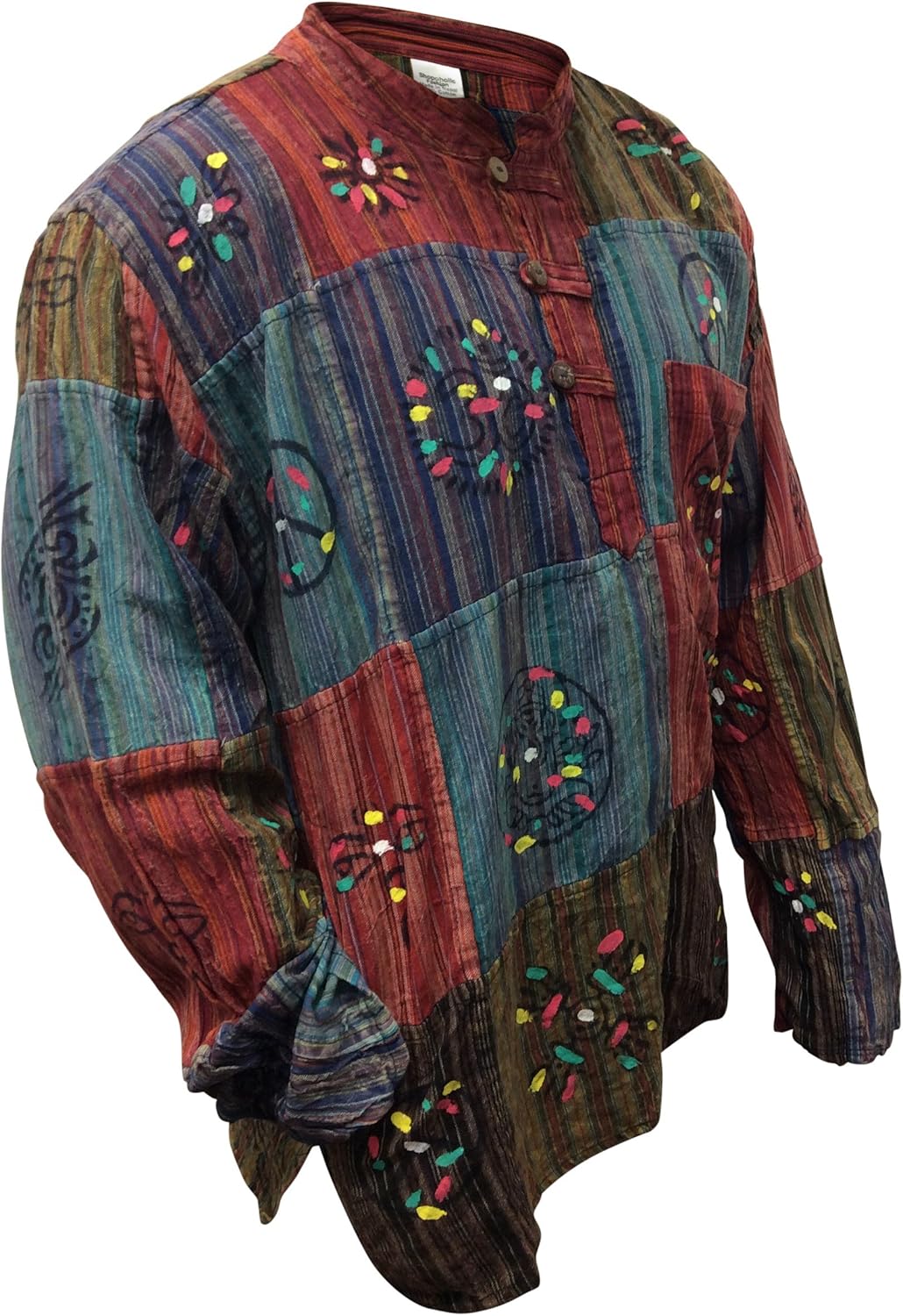 BOHEMIAN PERFECTION: Embrace the artistic charm of our handmade hippy shirts for men featuring patchwork style and grandad shirt elements
