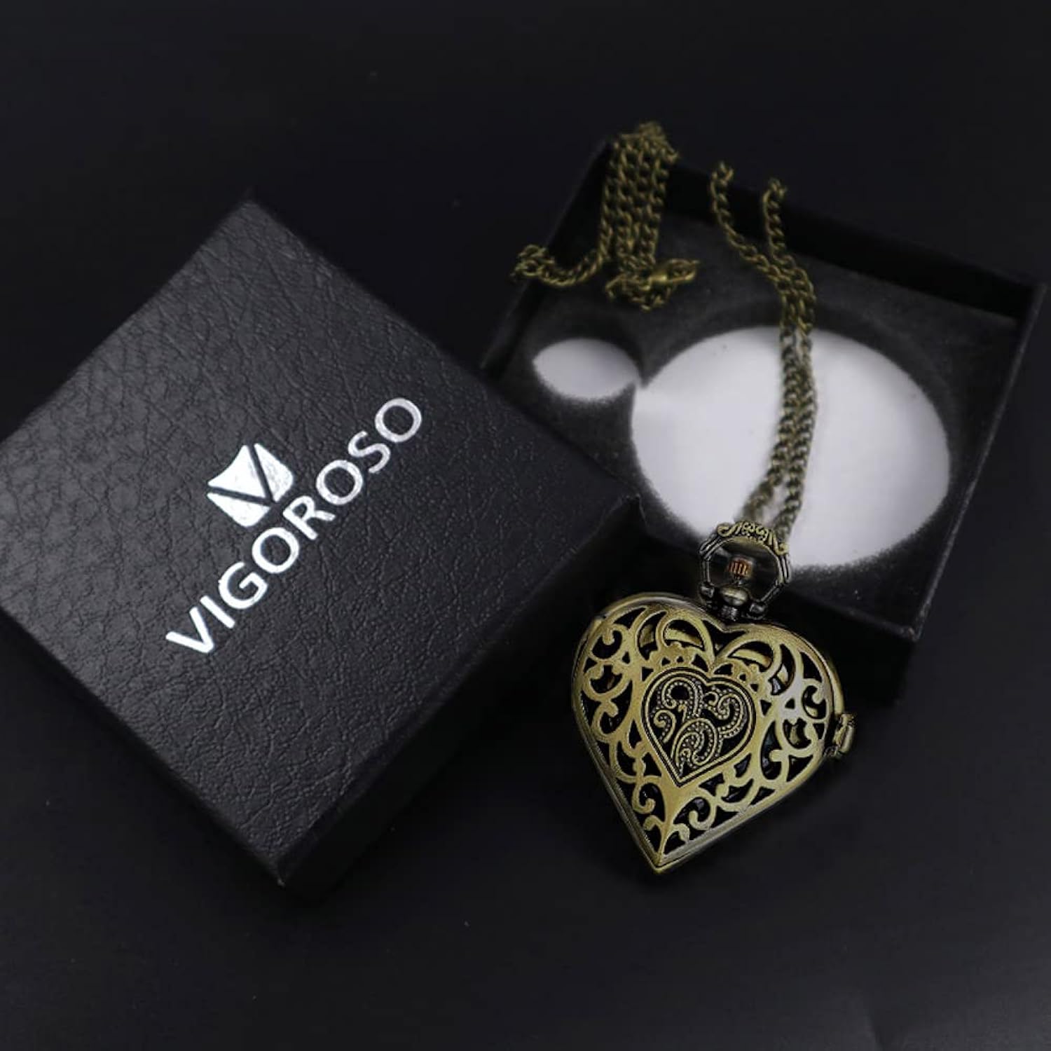 VIGOROSO Women's Pocket Watch, Analog Display, Quartz Movement, Silver Stainless Steel, Heart Pendant Necklace, Unisex Acc...