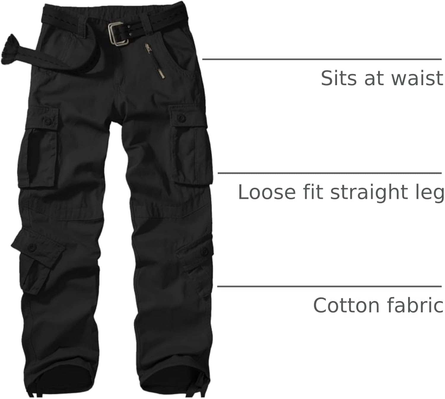 Solid camouflage cargo pants for men/Casual style with multi-pockets for convenience/The belt in the picture is not included.