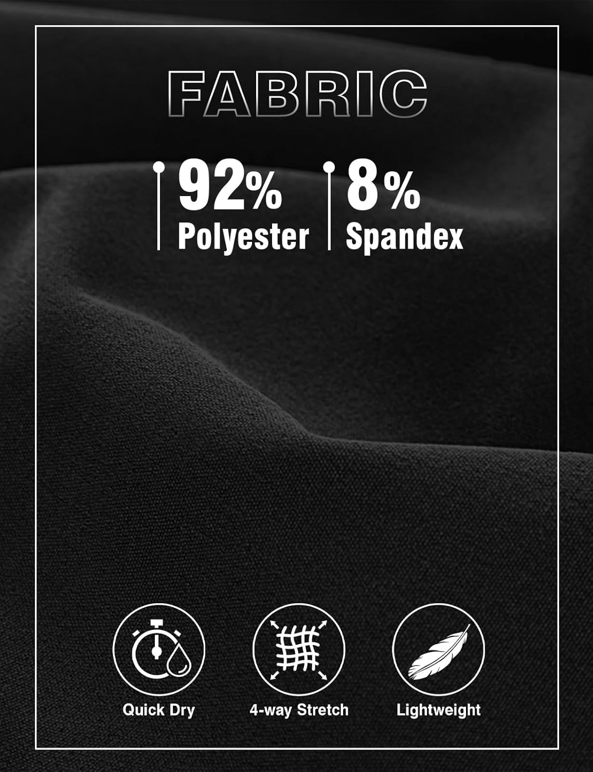 Quick dry and lightweight 4-way stretch fabric helps to wick away moisture and dry quickly keep you cool in hot summer