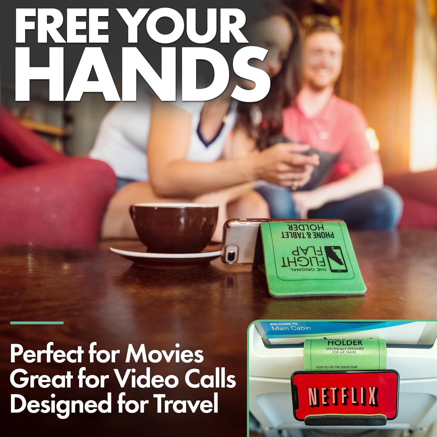 USE FOR TRAVEL, WORK & LEISURE – Great for watching movies, entertaining kids, streaming workouts, hosting a zoom video call, or cooking with recipes on your phone. Use the FLIGHT FLAP phone stand anywhere to grip your device and view your content comfortably. Attaches to most airline seat backs and tray tables. During car rides, attach behind the headrest and stream movies for kids. Properly positions your phone or tablet to host zoom meetings.