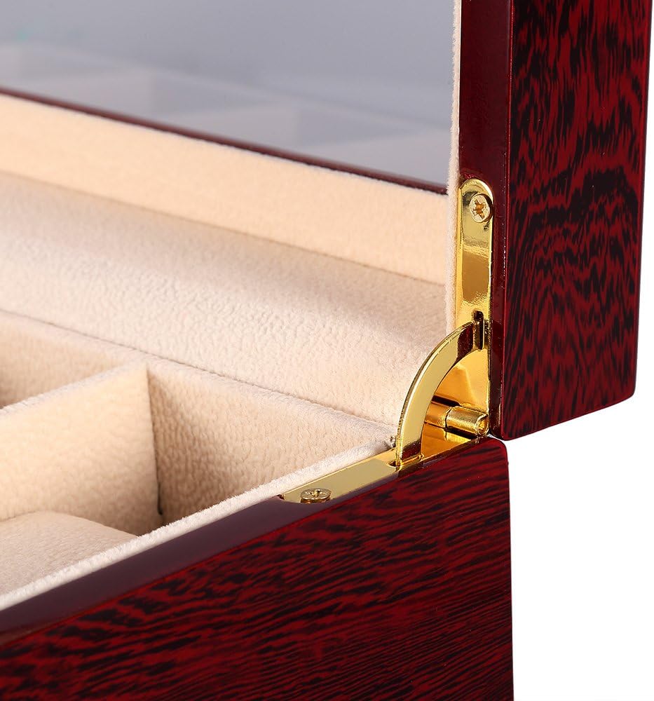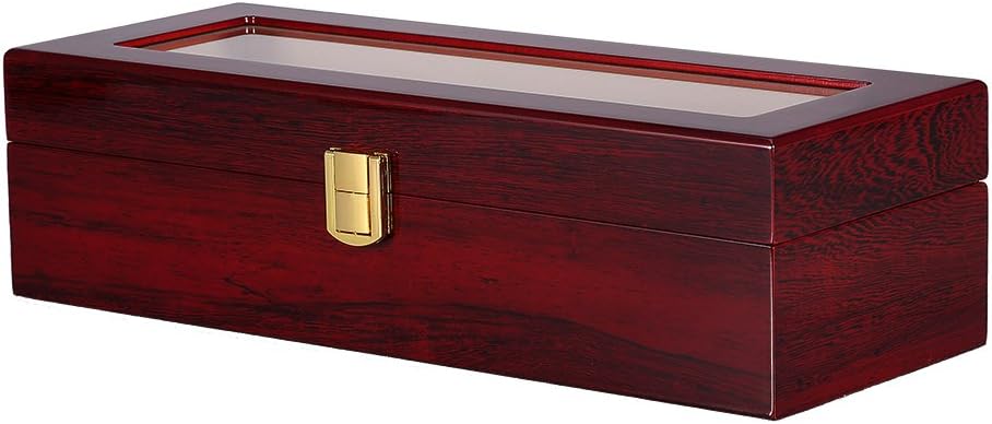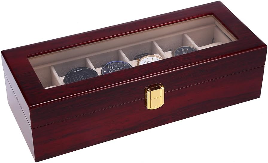 Uten Watch Box, 6 Slot Watch Case, Watch Holder with Glass Lid, Wooden Watch Case with Removable Watch Pillow, Metal Clasp...