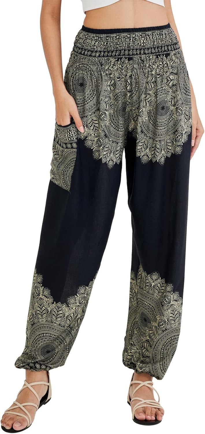 VERSATILE STYLE - The lightweight and breathable fabric features ornate and ethnic prints perfect to practice yoga, pilates, zumba, dance, stretching, beach party, run errands, or chill around the house in style. Your new womens lounge pants are great for summer pajamas and hot weather.