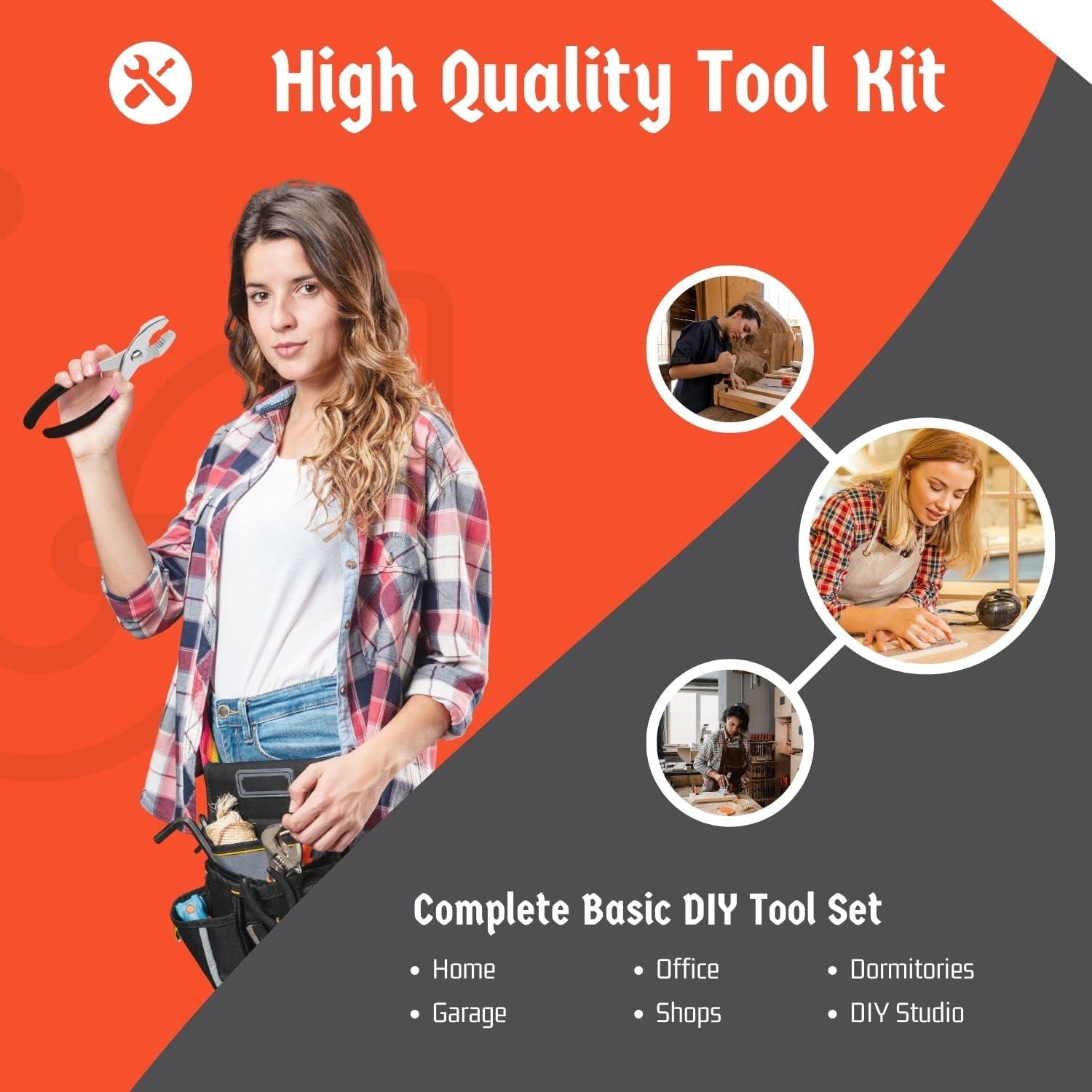 Hand Tools Case Storage - This beginner toolbox has a durable case for storing and protecting all the equipment. It makes it simple to transport tools to your worksite while keeping everything properly organized and accessible for safekeeping when finished with the project, repairs, or maintenance