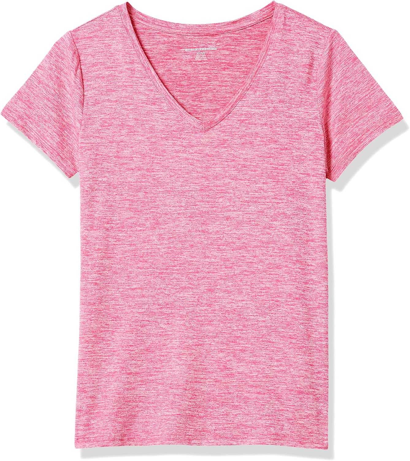 Amazon Essentials Women's Active Quick Dry Tech Stretch Short-Sleeve V-Neck T-Shirt (Available in Plus Size), Pack of 2