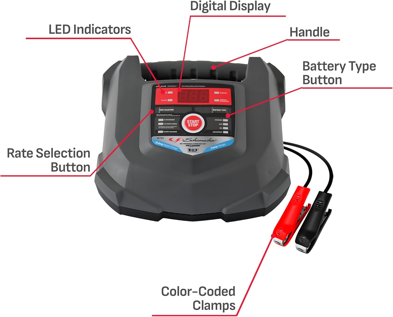 Schumacher Electric Car Battery Charger and Maintainer SC1280 4-in-1, 15 Amp, Fully Automatic for 6v and12v Automobile Bat...