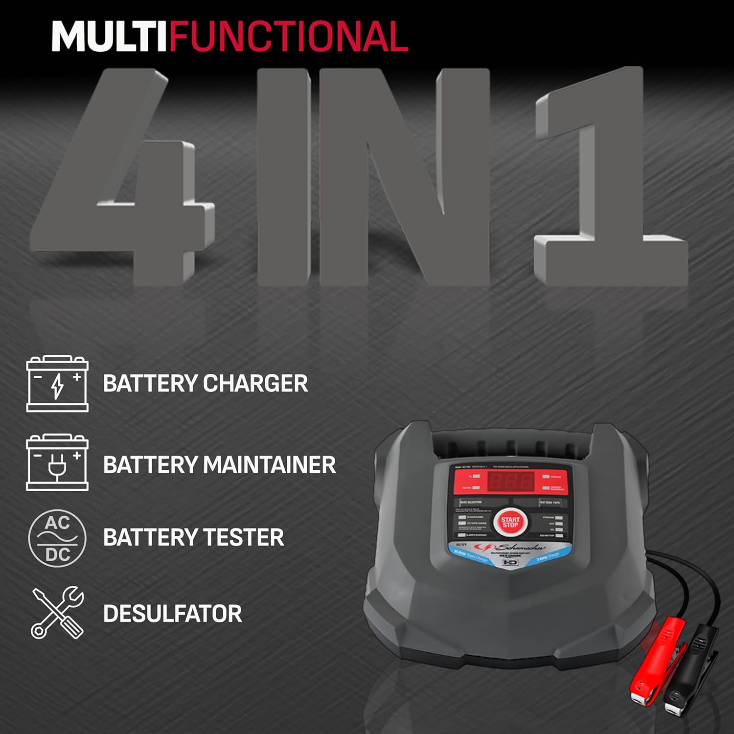 Simple 4-in-1 Device - Easily charges, maintains, tests, and desulfates batteries with minimal effort