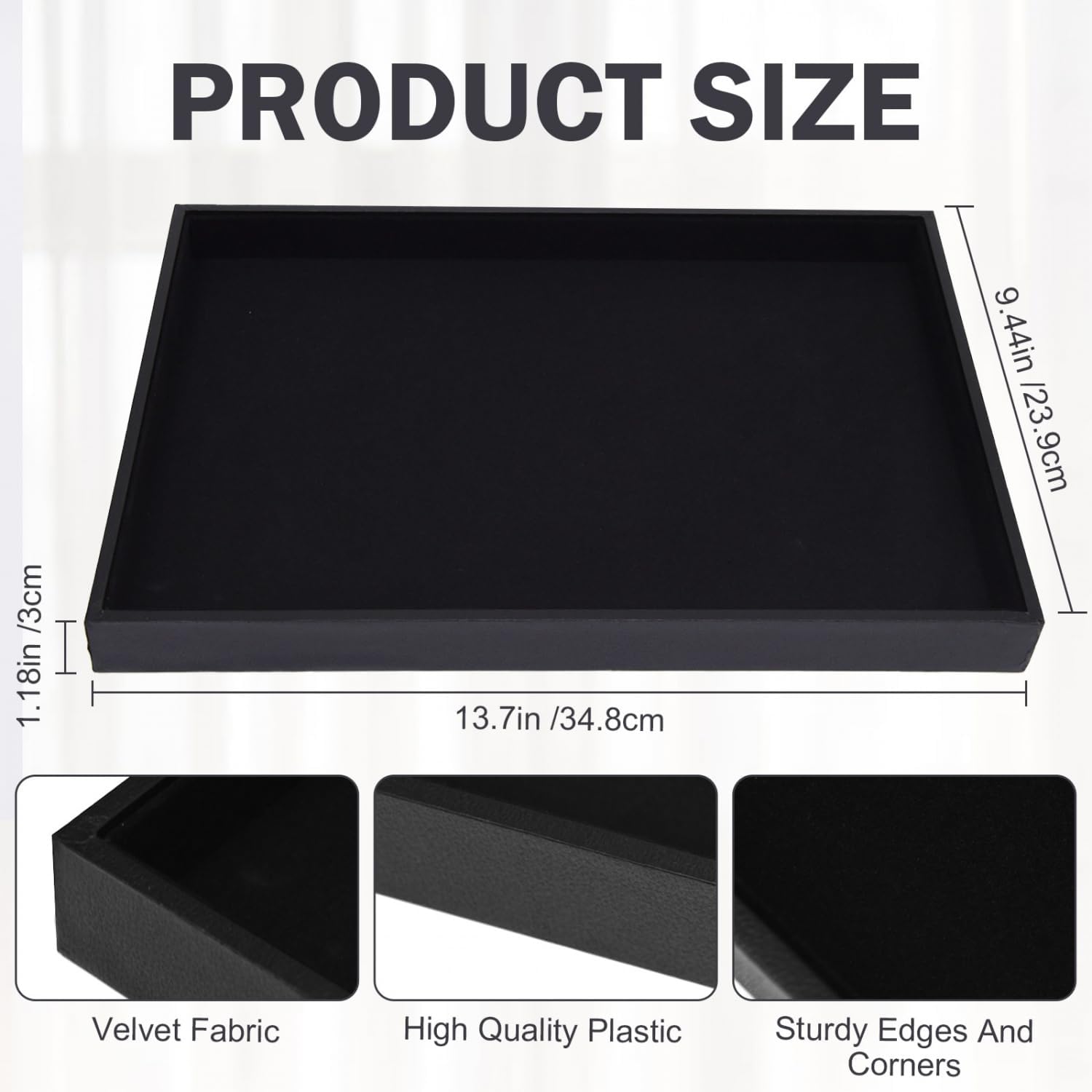 OVERALL DIMENSION: 13.7" L x 9.44" W x 1.18" D,The black jewelry display tray is great for personal use at home, and perfect for a countertop jewelry display in stores or trade shows​