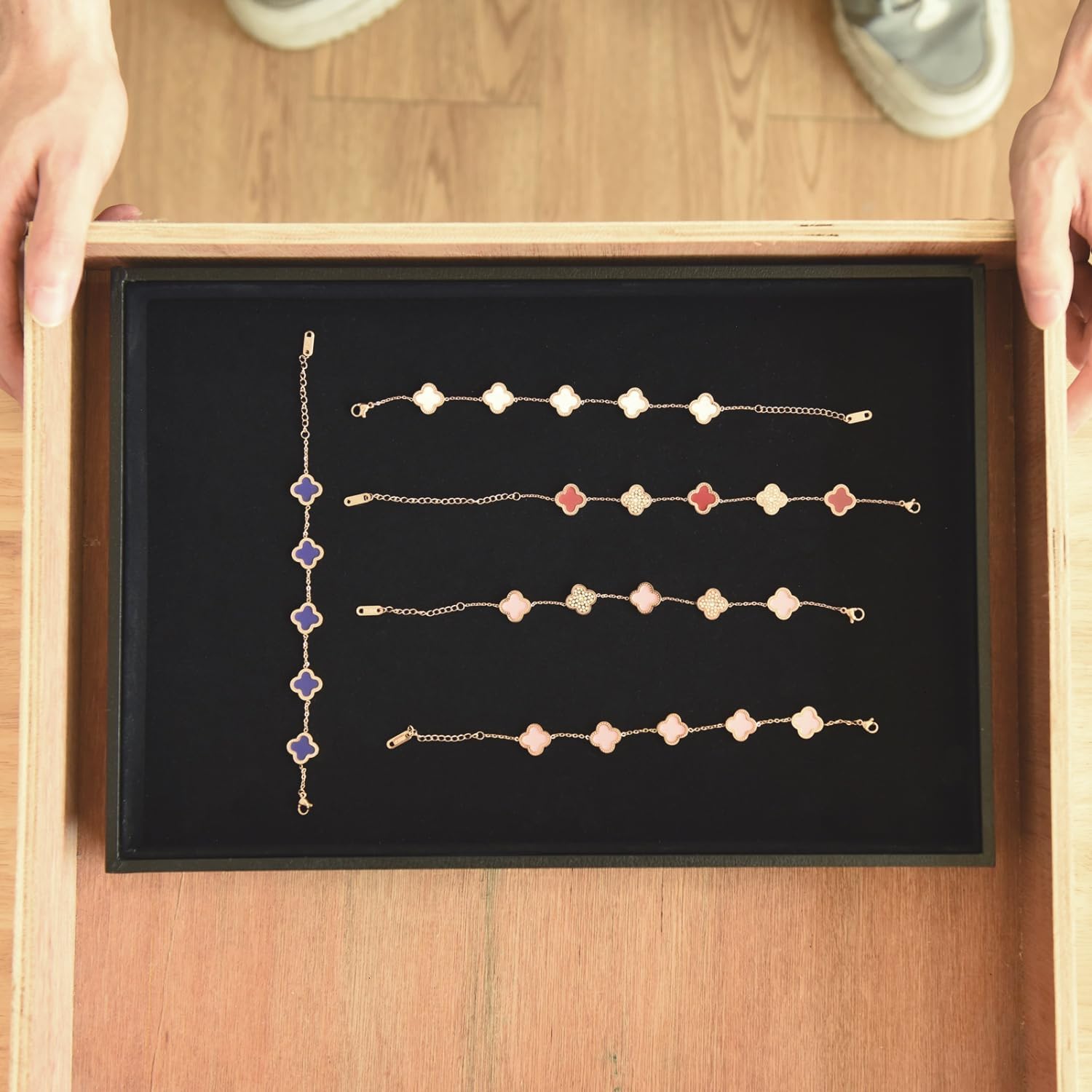 MATERIAL:​ Black velvet jewelry tray for drawers made of high quality black velvet​. It feels great to the touch and looks elegant​.This jewelry soft lined help prevent tarnishing and scratching