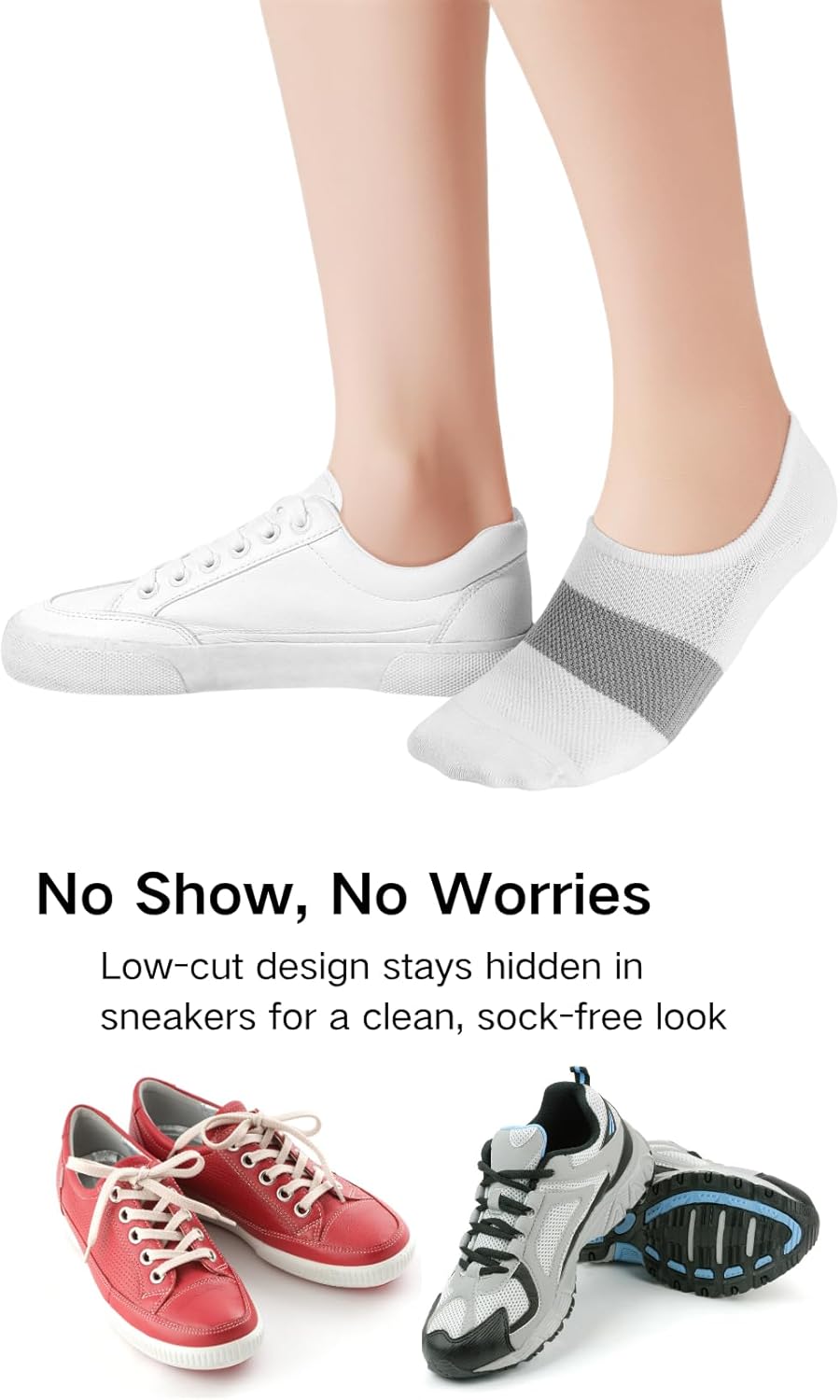 No Show, No Worries:Hidden low-cut design stays out of sight in sneakers, keeping your look clean and sock-free. Perfect for everyday wear without any wardrobe fuss