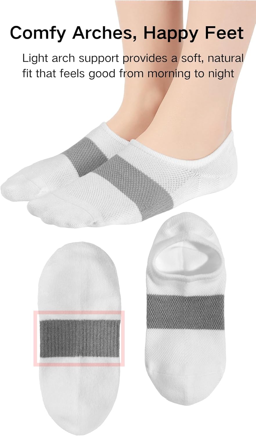 Snug Fit, All-Day Ease:Offered in M (8–11), these socks hug your feet just right—secure, hidden, and comfortable from morning to night