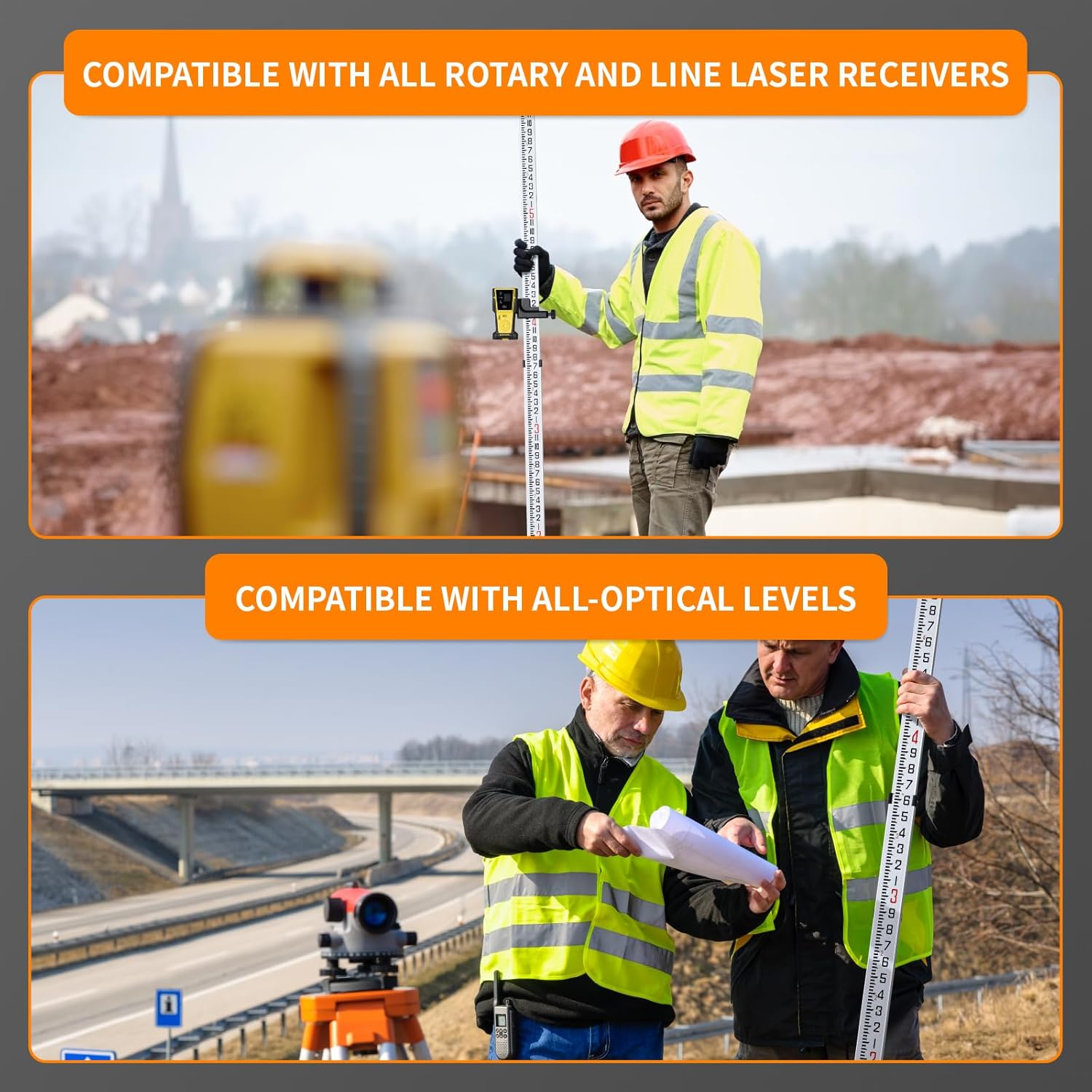 Firecore 16-Foot Aluminum Grade Rod - 10ths, 5 Sections Telescopic with Bubble Level-FLR500B