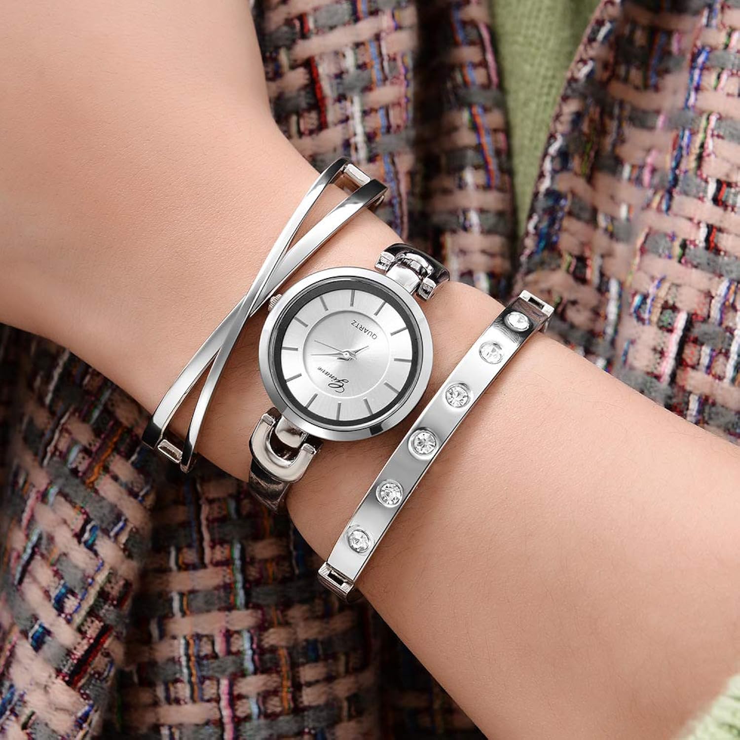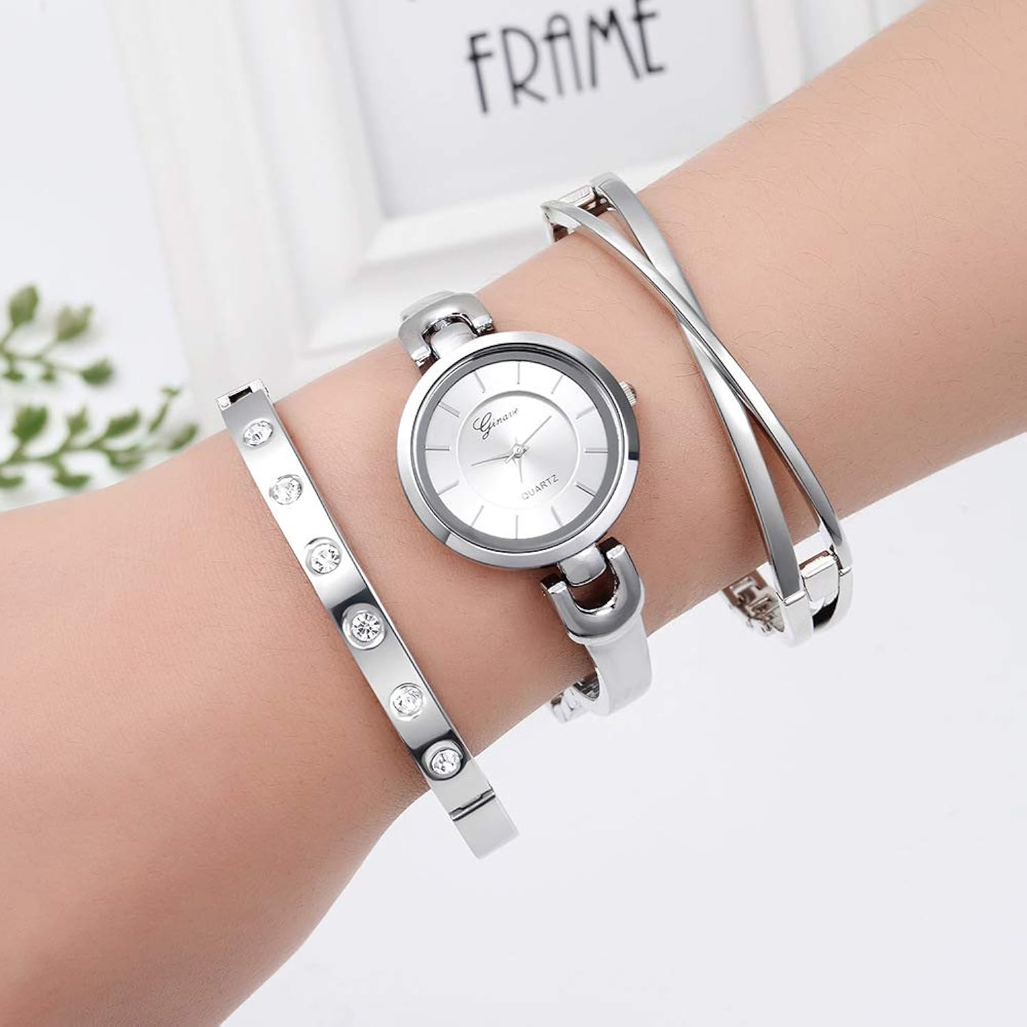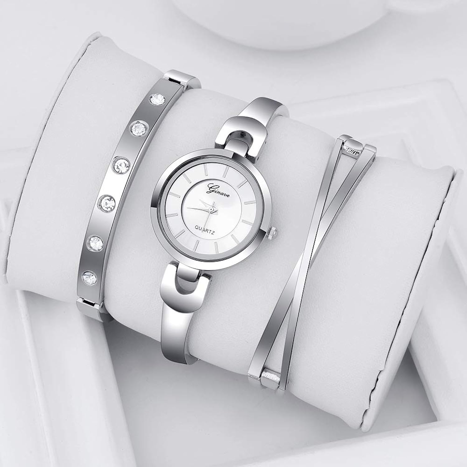 Design: Watch + 2 bracelets, Simple watch and bracelet with luxurious diamonds.