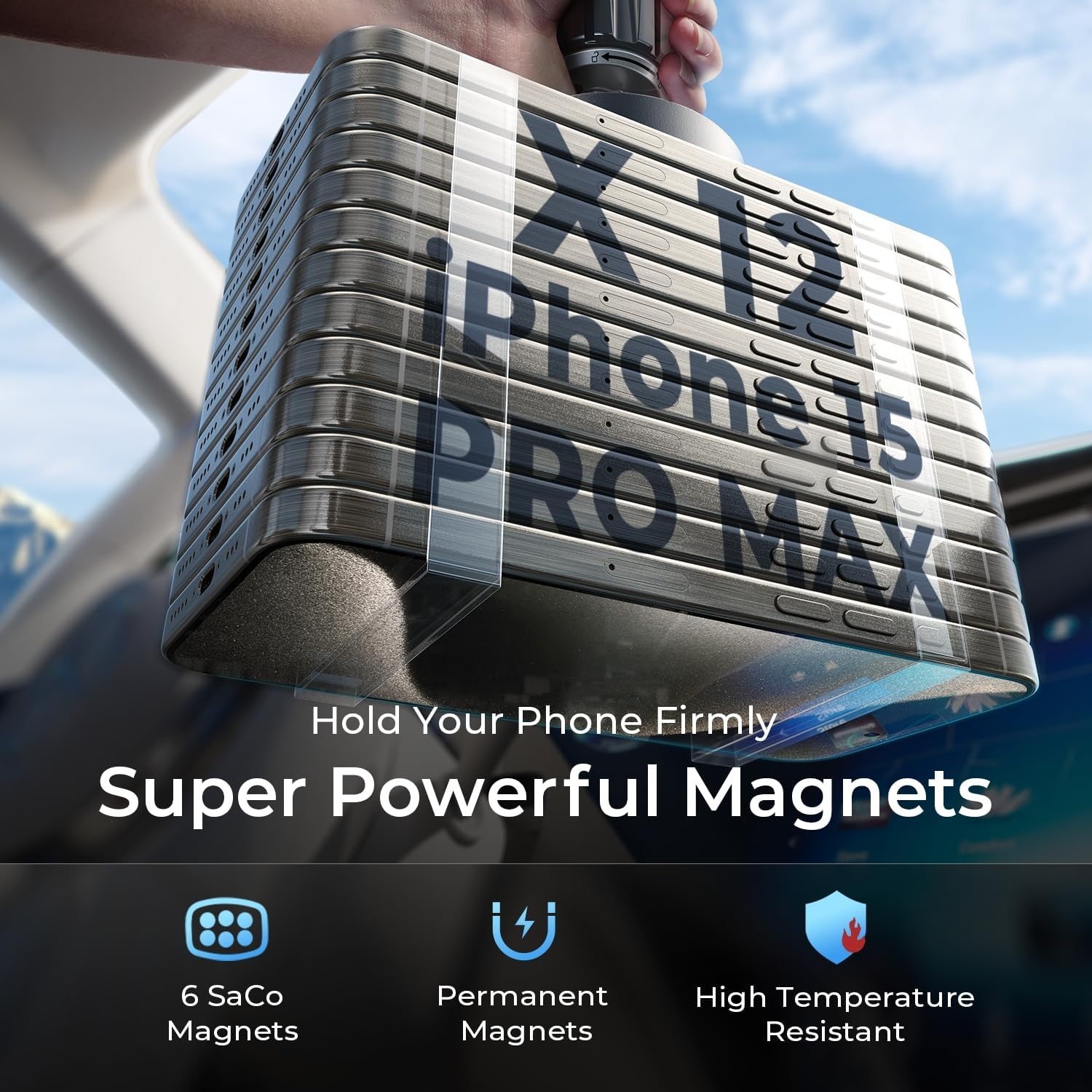 OFFICIAL CERTIFIED& WIDELY COMPATIBLE: LISEN Car Phone Holder is officially certified by SGS RoHS and SGS CP65, and has passed tests for magnetism, phone signal, hook stability and ingredient safety. The quality-controlled car mount is compatible with the following devices: iPhone 16 15 14 13 12 11 pro max / XR / X / 8/7/6/5, Note 9 / Galaxy Note20 S24 S23 S22 U, iPad Air 2 / Mini, and other smart phones and Mini Tablet 3 / Pro 9.7 and above. NOTE:IT CAN’T BE USED WITH MagSafe! Must use a metal plates or it won't work.