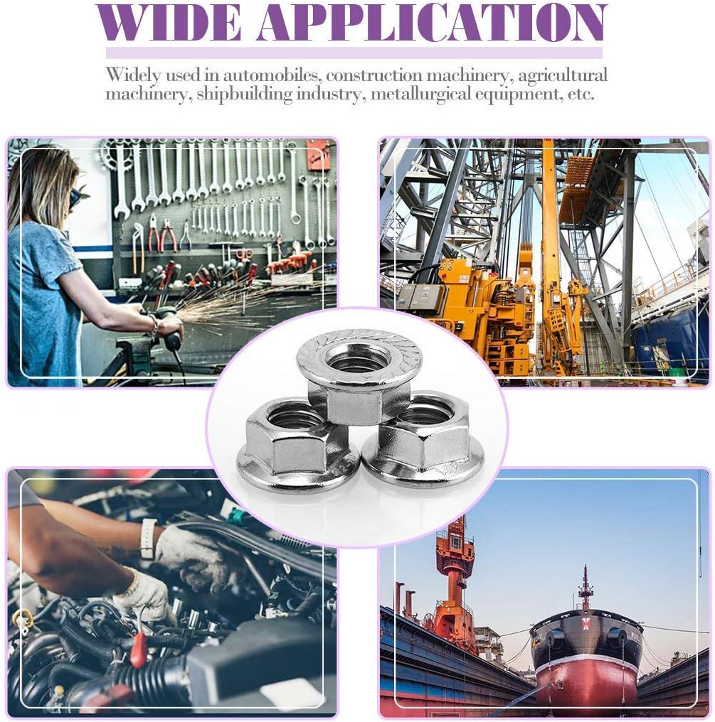 ✅【MATERIAL】- Made of 304 stainless steel material, the Hex Serrated Flange Nut have high hardness and great corrosion resistance, which are durable and non-deformable. Most importantly, they are non-toxic and pollution-free environmentally friendly products.
