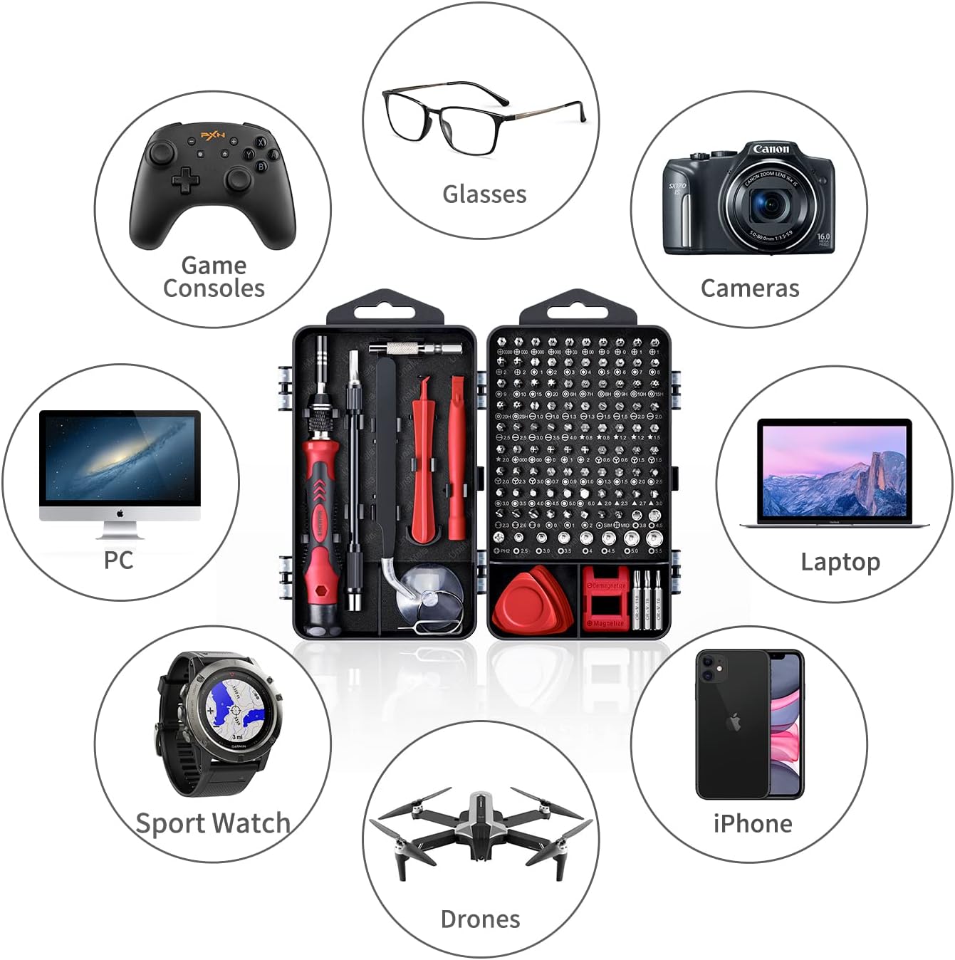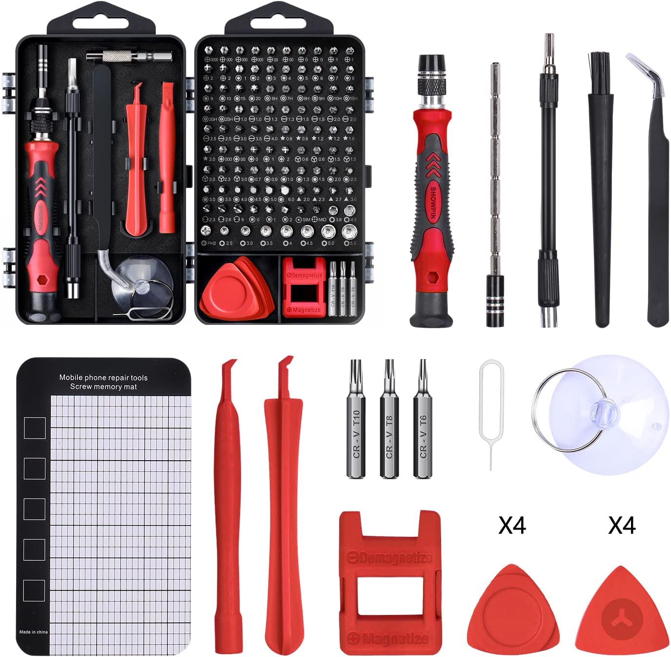 【With Professional Storage Case and Magnetizer】This computer tool kit comes with a shockproof plastic storage box, each screwdriver bit is well placed in the corresponding slot, easy to find and store. The included magnetizer can easily enhance the magnetic properties of the screwdriver bit. The 5.7*3.3 inch magnetic pad can absorb small screws and tiny metal parts, no worry about losing screws, or damage electronic components due to strong magnetism.