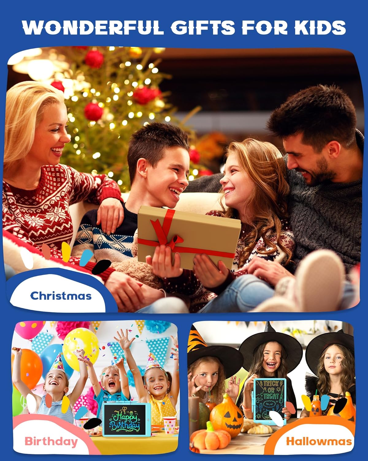 EDUCATIONAL AND LEARNING TOY FOR KIDS: ♥ The battery door on the back of the drawing board is fixed by a screw, which is safer for children. bravokids toys lcd writing tablet can be used as a doodle board, drawing tablet, writing board, doodle pad, kid’s drawing pad, drawing board for toddlers, graphic tablet, baby sensory toys, kids toys. Good Choice for kids as gift for back to school, birthday, valentines, Thanksgiving Day, Easter and any occasion!