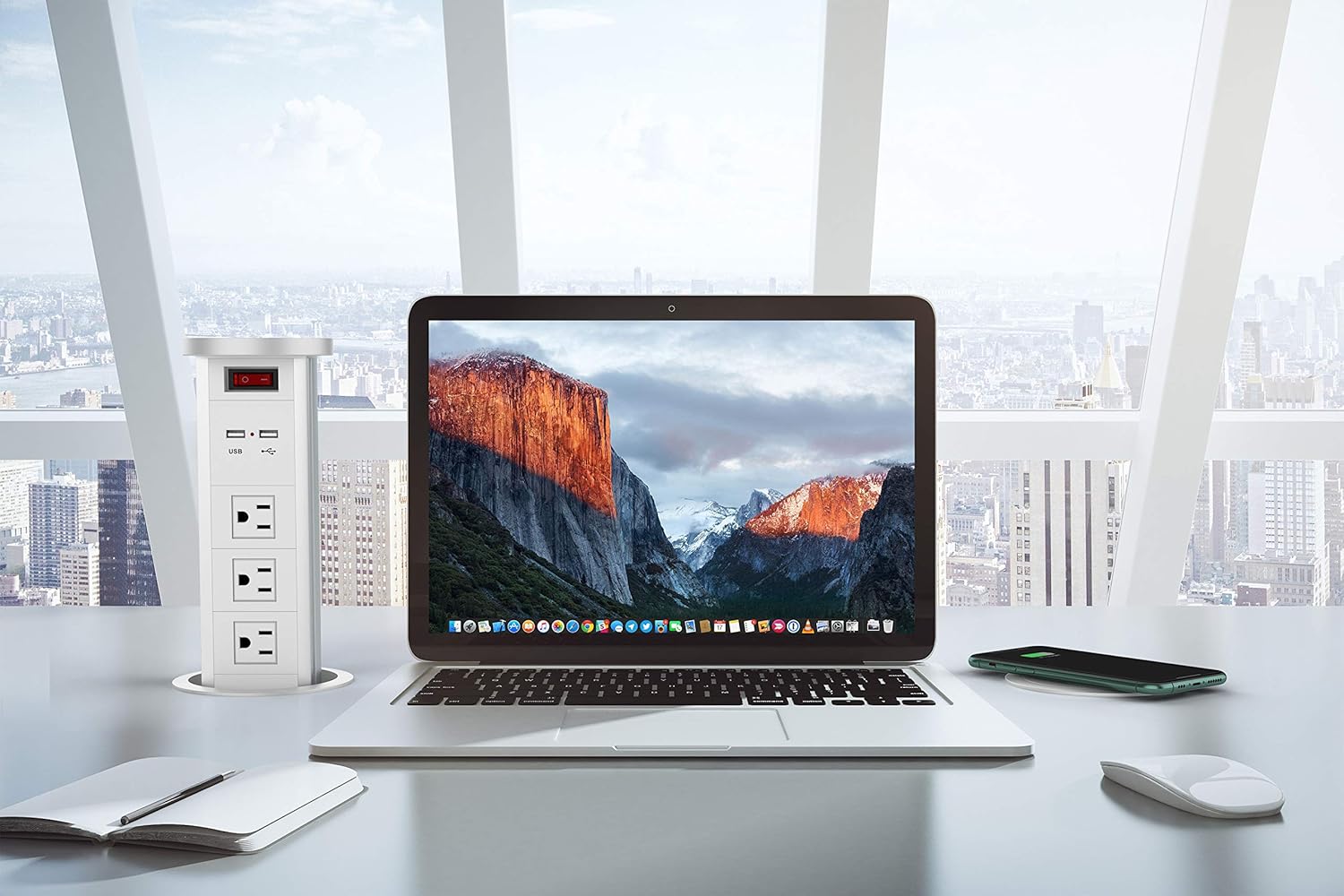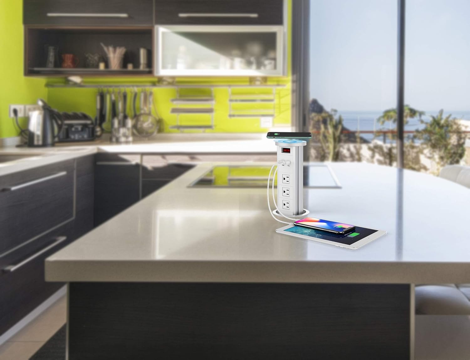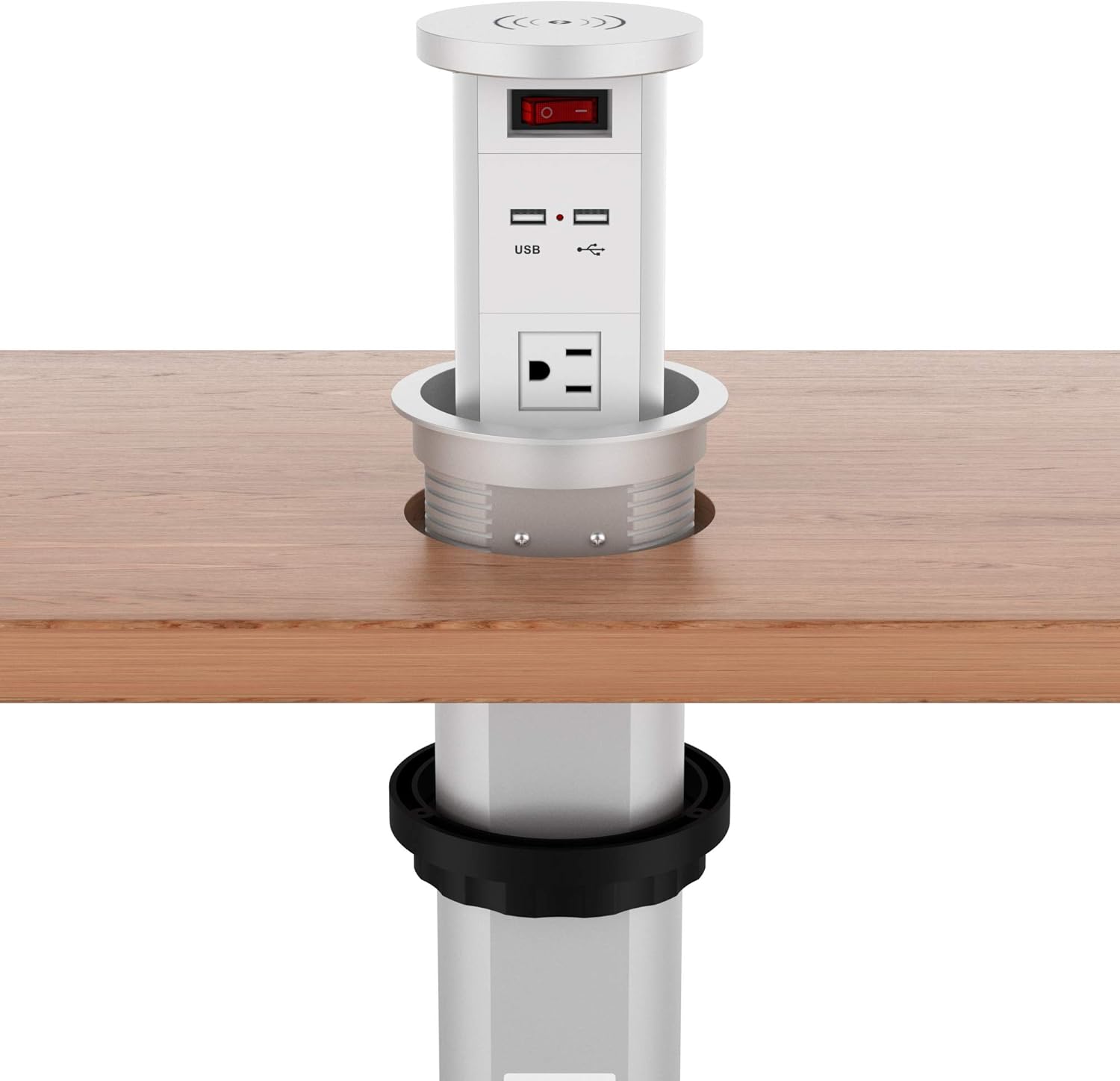 【Multi Outlet & Aluminum Alloy Housing】: Multi-function pop up power station built-in 3 US outlets & 2 USB charging ports & wireless charging function & 5.3 ft power cord. Pop up power strip outer casing is made of aluminum alloy, and interior of the socket is made of plastic, which is more durable than normal type of power strip, also looks exquisite.