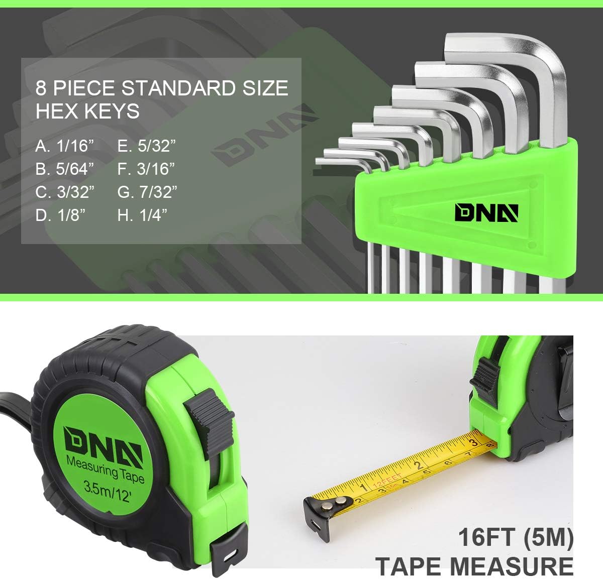 Included Components: 8Oz Claw Hammer Utility Knife 10 Replacement Blades Slotted Screwdriver 3/16 X 3 Phillips Screwdriver Ph1 X 3 Bit Driver Slotted Driver Bits - 1/8", 5/32", 3/16", 1/4" Phillips Driver Bits - Ph1, Ph2, Ph3 Pozi Drive Bits - Pz1, Pz2 1/4 Drive Socket Bit Adapter 9 X Standard Size Sockets - 3/16", 7/32", 1/4", 5/16", 11/32", 3/8", 7/16", 15/32", 1/2" 8 Standard Size Hex Keys - 1/16", 5/64", 3/32", 1/8", 5/32", 3/16", 7/32", 1/4" 1 X Tape Measure 16Ft / 5M 1 X 6.5 Pliers 1 X Electrical Test Pencil 1 X Pvc (Electrical) Tape