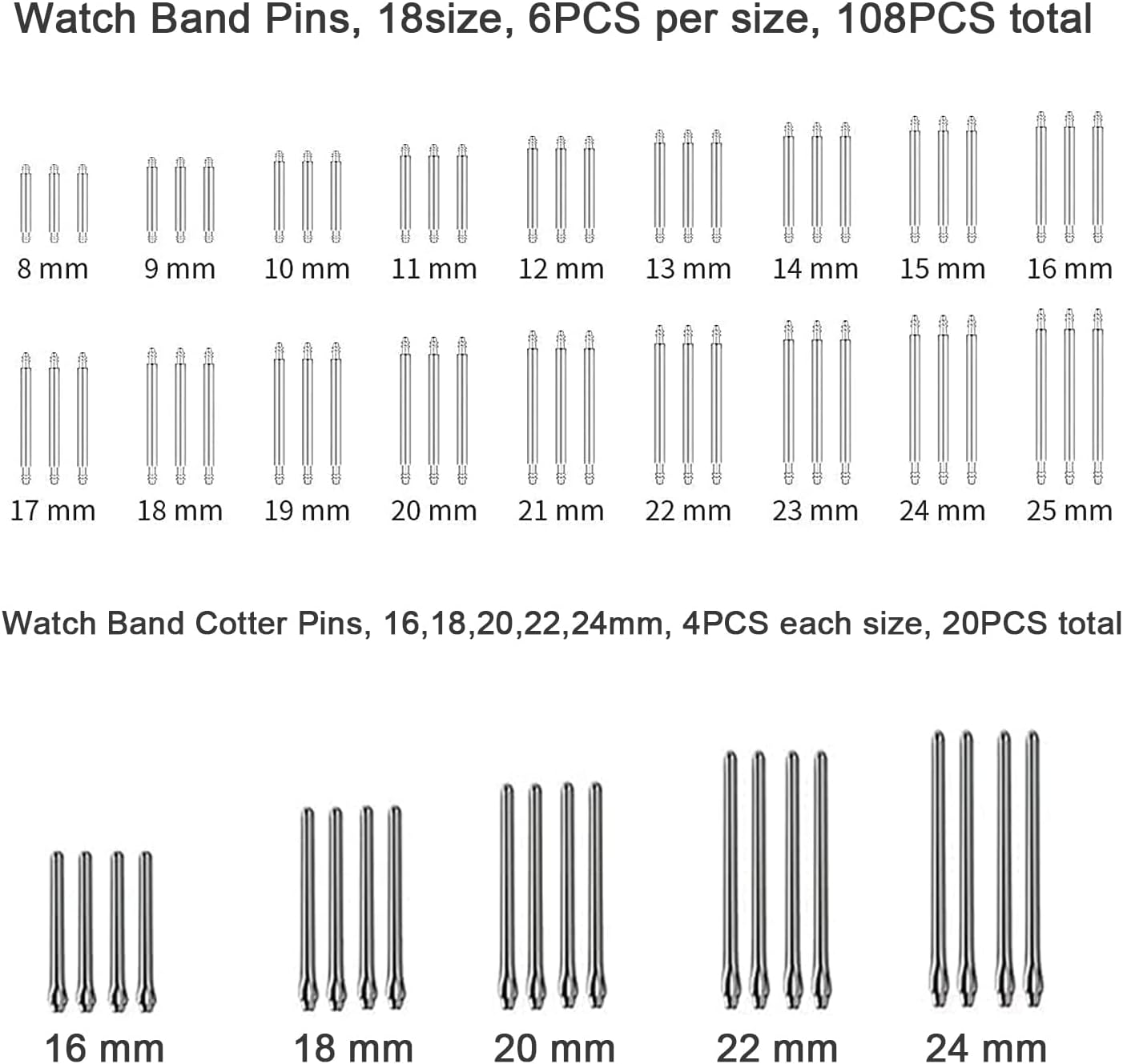 Fit various sizes: Multiple pin sizes and a sturdy steel removal tool ensures compatibility with various watch bands and cases