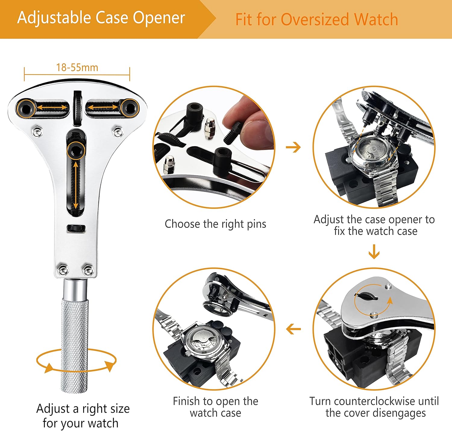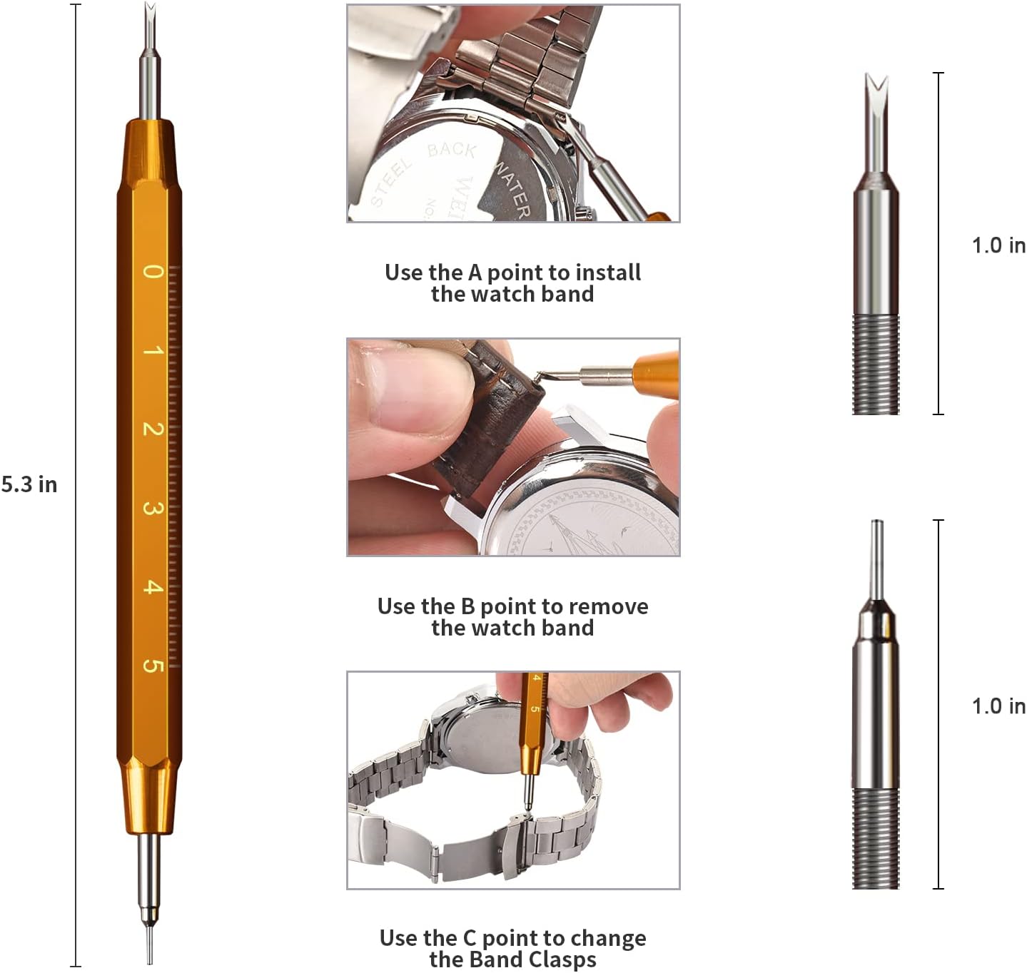 Versatile and Broadly Applicable: This watch tool is ideal for removing bracelets, adjusting strap length, opening watch back cases, replacing batteries, and performing daily maintenance on brands like Rolex, Invicta, Seiko, Citizen, and more