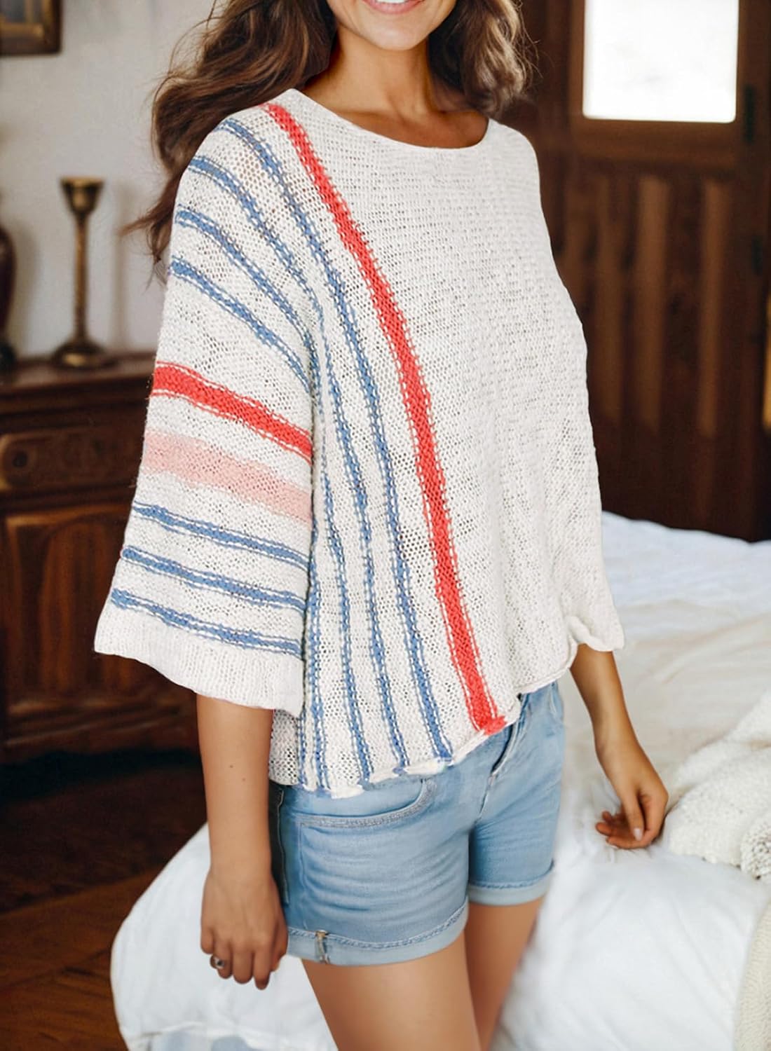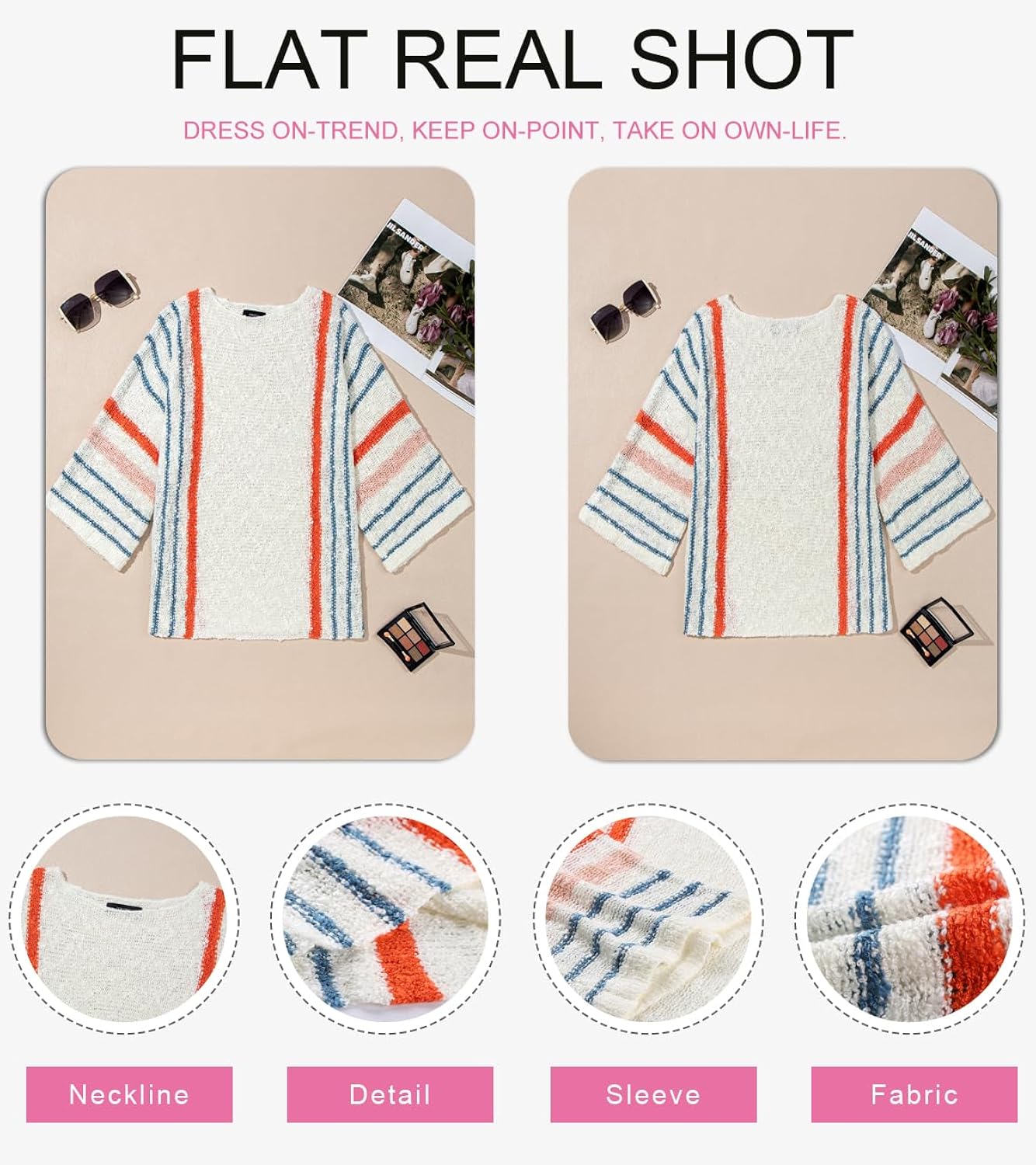 *The color stripes may be BRIGHT due to different light and screen display. *The sweater is textured and lightweight style, which suits well for Spring, Summer, Fall and Warm Winter. *With the loose fit design, please choose size carefully according to your size and size chart.