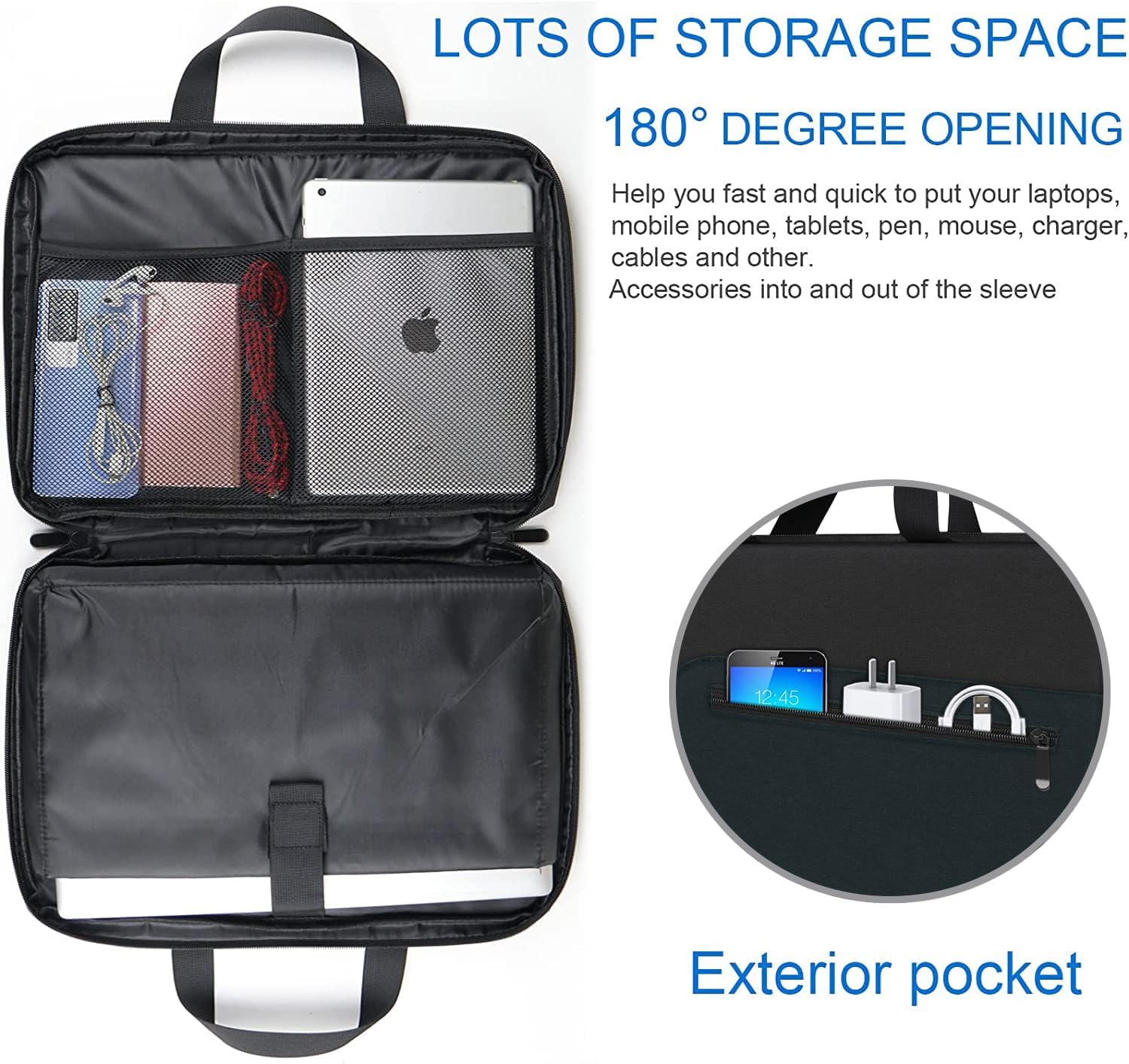 ??LOTS OF STORAGE SPACE: External Dimensions: 15.8 x 11.5 x 1.8 Inches, This 15.6-inch laptop Case bag has enough space to store laptop peripherals, a separate laptop compartment inside can accommodate 15-15.6-inch laptops, and two mesh pockets can store such as pens, Mouse, Headphones Cables, Chargers, Books, Power Packs, Ipads And Other etc. There is a front pocket on the outside to store your phone, Keys, business cards, Small Items, etc.