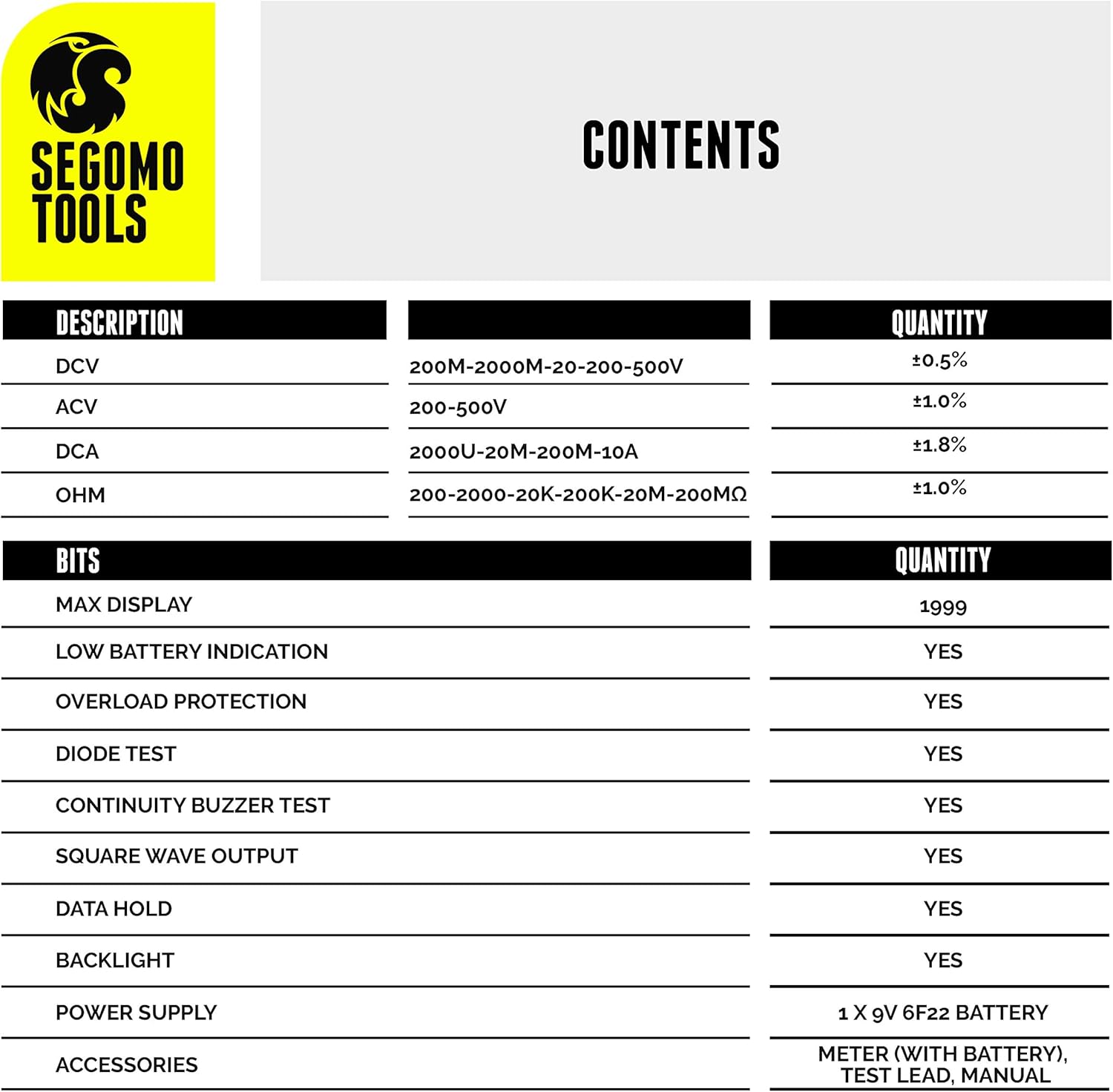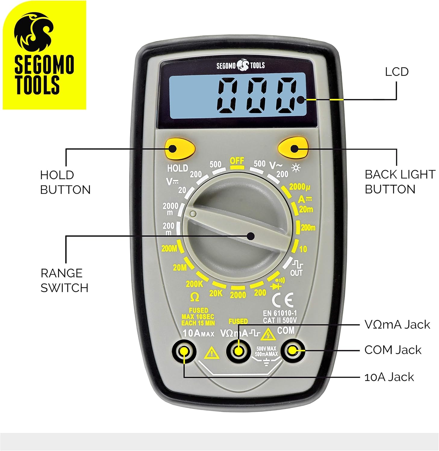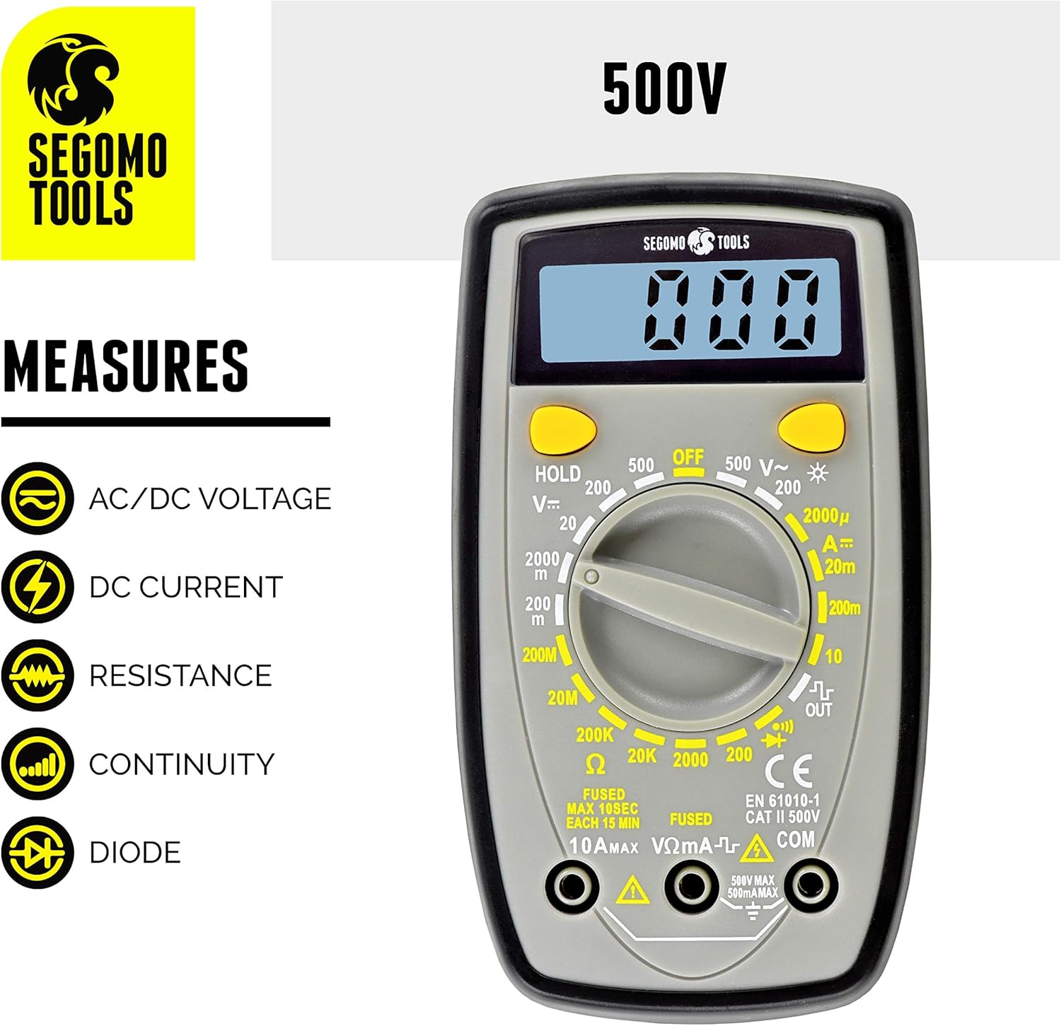 Segomo Tools TRMS 6000 Count Multimeter - Voltage, Current, Resistance, Continuity, Diode, Capacitance, Frequency & Temper...