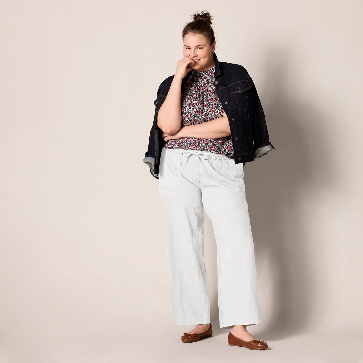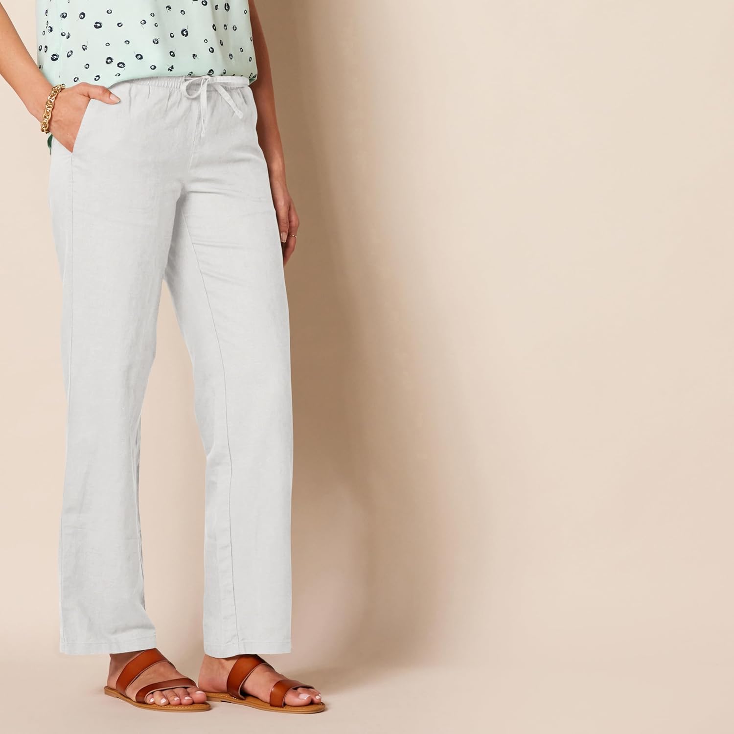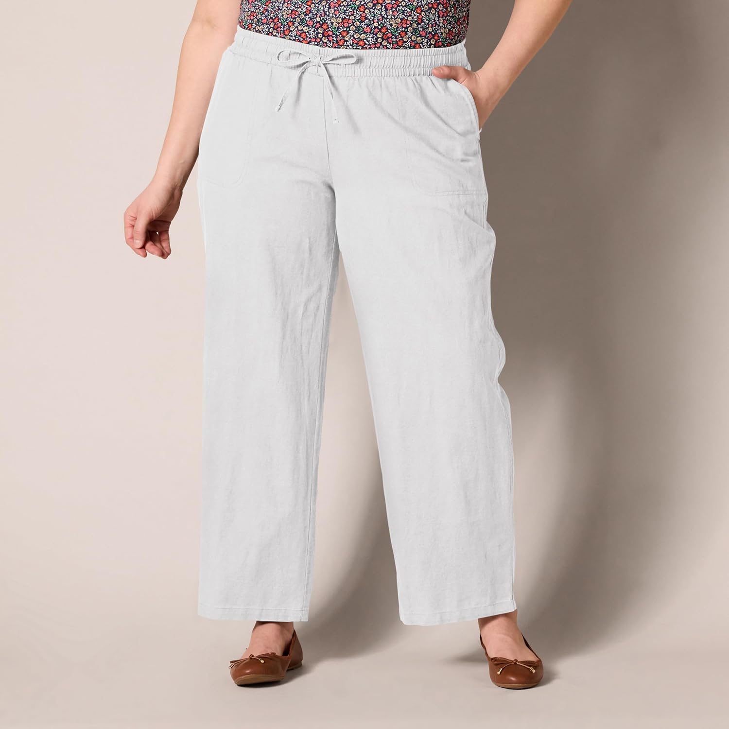 Amazon Essentials Women's Linen Blend Drawstring Relaxed Fit Wide Leg Pant (Available in Plus Size)