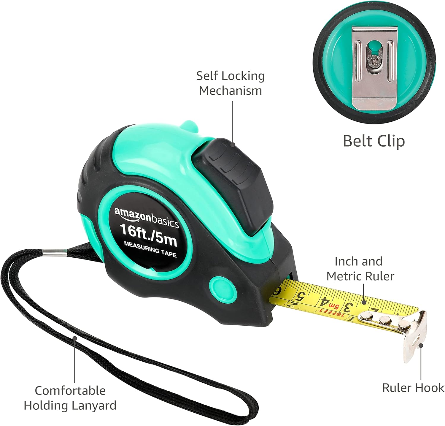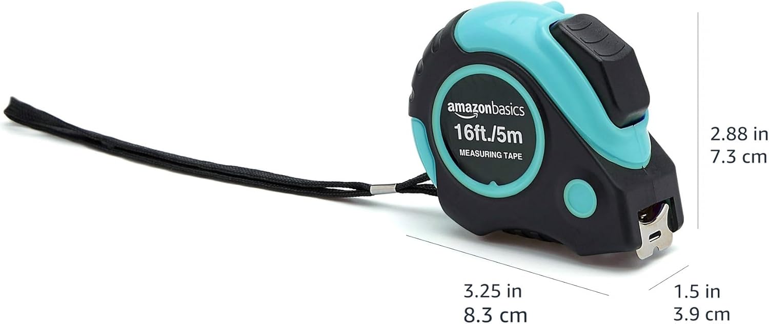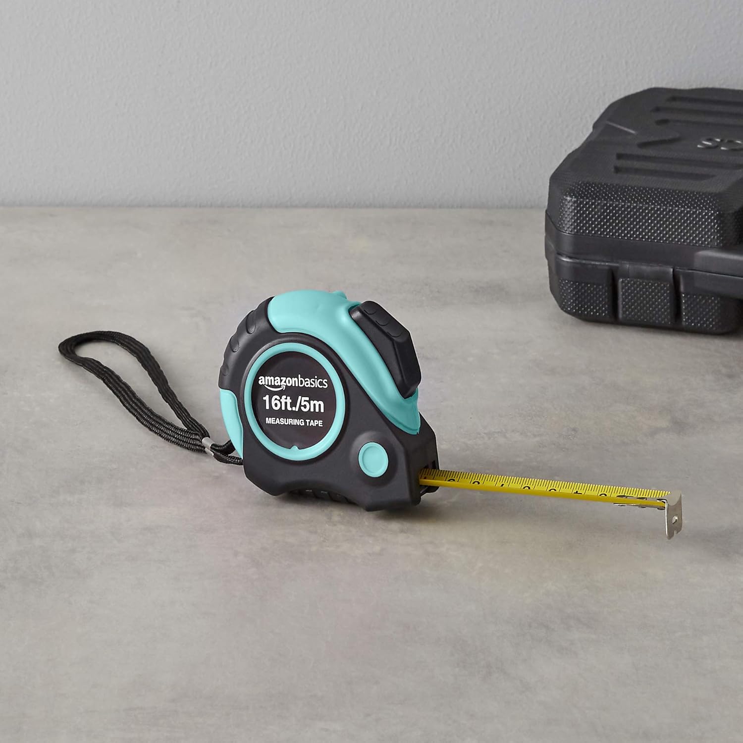 Amazon Basics Retractable Tape Measure with Push Button, Easy to Use, 16 Feet, Pink