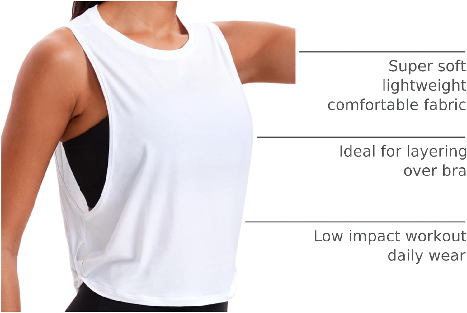 Sleeveless workout clothes with roomy arm hole for free movement