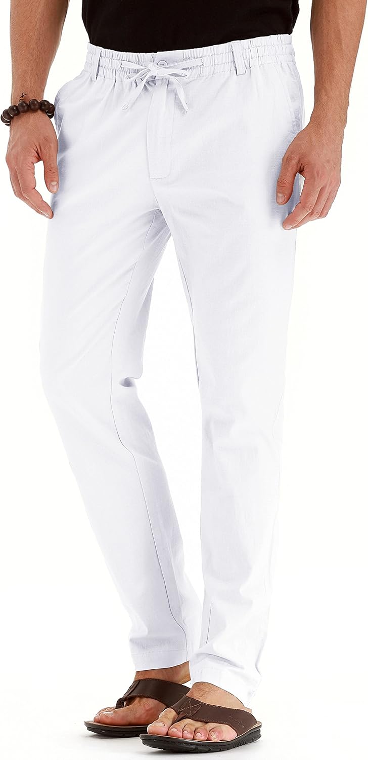 【For All Occasions】The drawstring linen pant is suitable for both clothing and casual, nice for daily wear.dates, beach wedding, party, vacation, night out and lounging etc. Perfect gift for father, friend and boyfriend.
