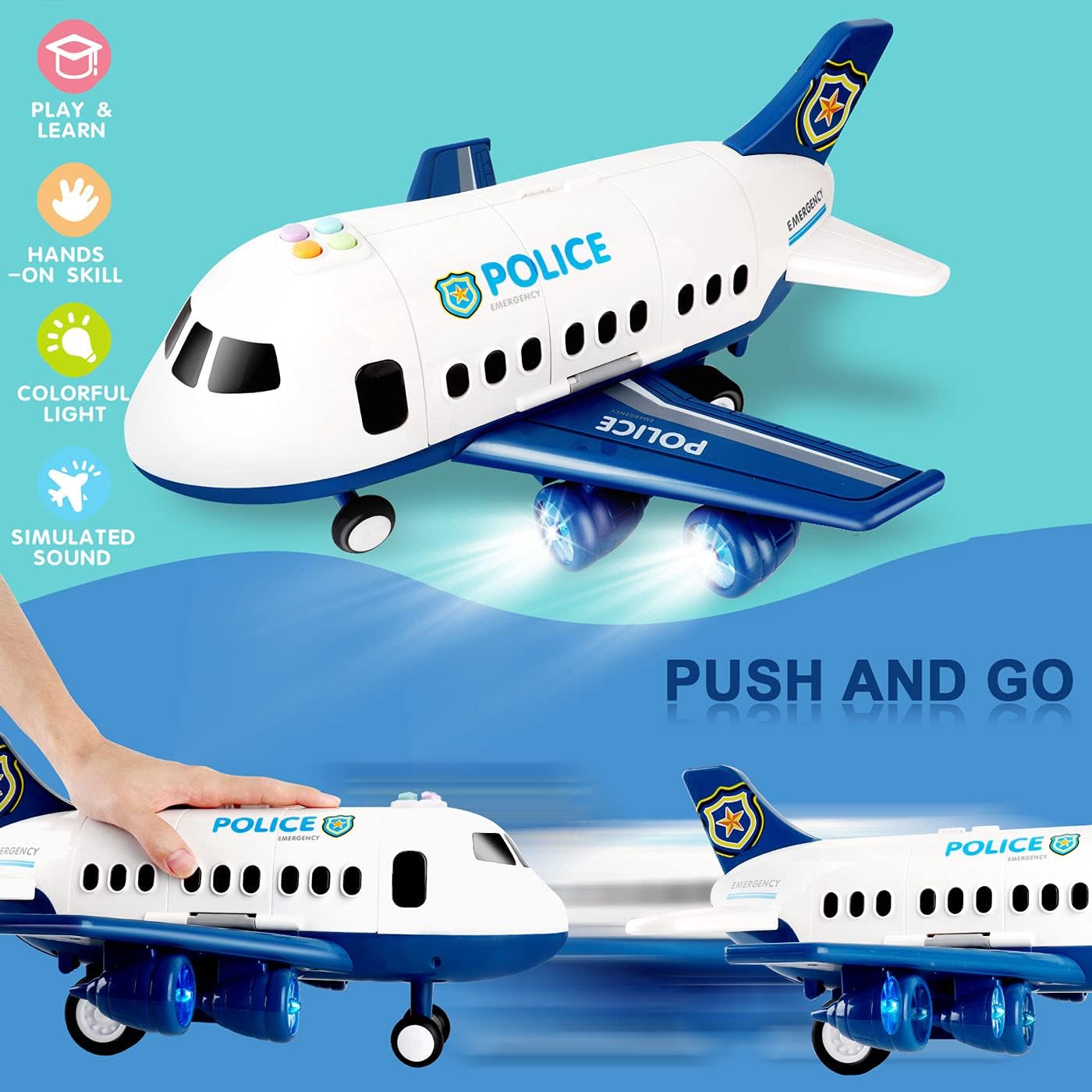 SO MUCH FUN:Push Friction Powered Toys Slightly,It'll Go Last for Long Distance,Press The Button Above The Airplane,You Can See The Bright Flashing Lights and Hear The Sound of The Plane Taking off or The Airport Broadcast.It Requires 3 AA Batteries (not included).
