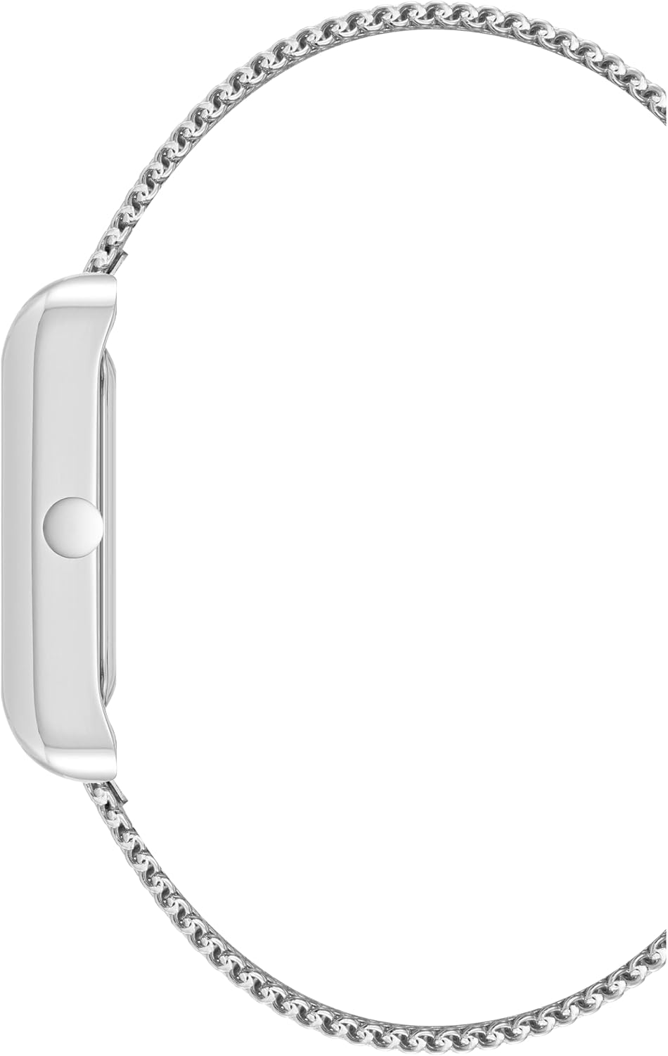 Silver-tone mesh bracelet with jewelry clasp closure; watch comes with an additional extender link included on the bracelet that can be removed to easily adjust the fit of the watch, with no tool needed