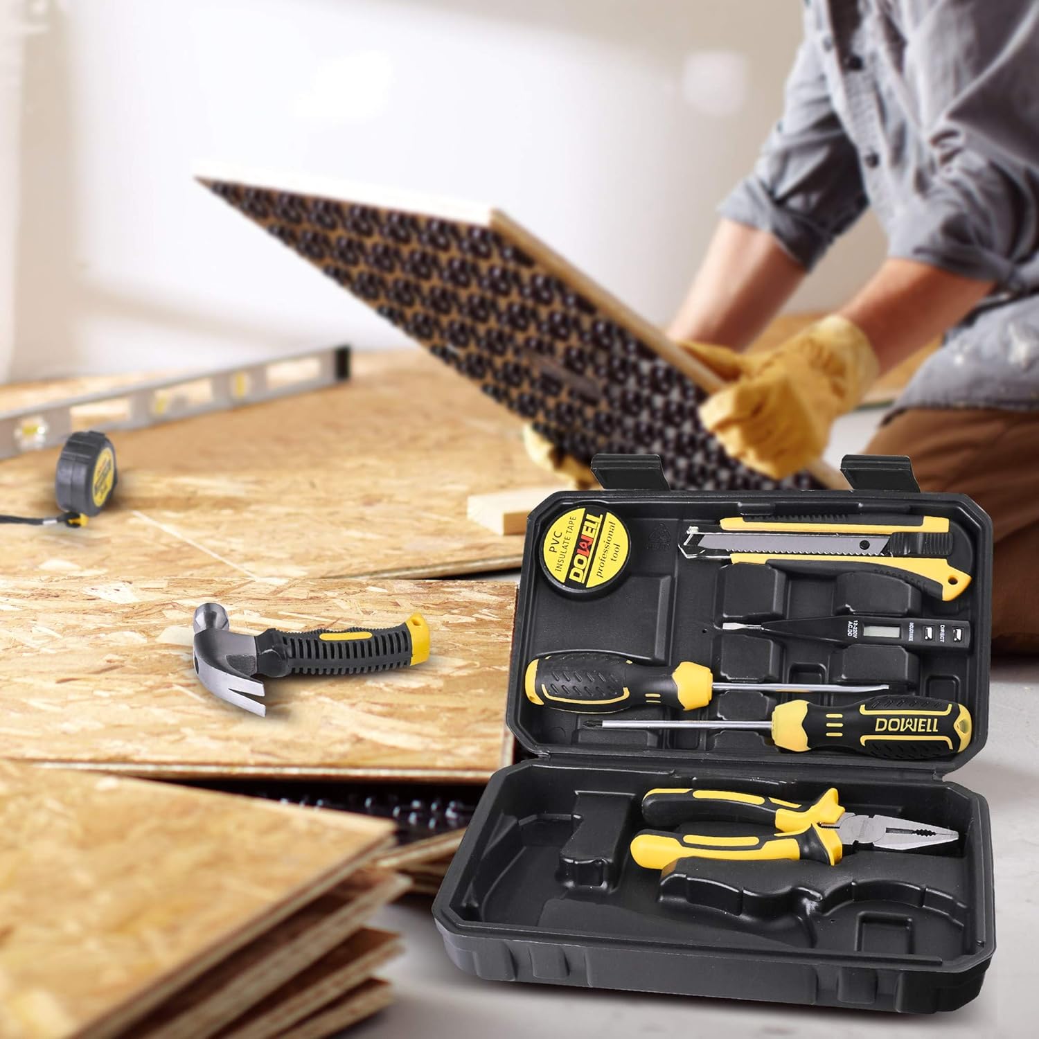 MULTIFUNCTION: This household tool kit contains tools for small repairs and basic DIY projects like picture hanging, furniture assembling, lighting, screw tightening, woodwork, around the house, office, garage, workshop, body shops.