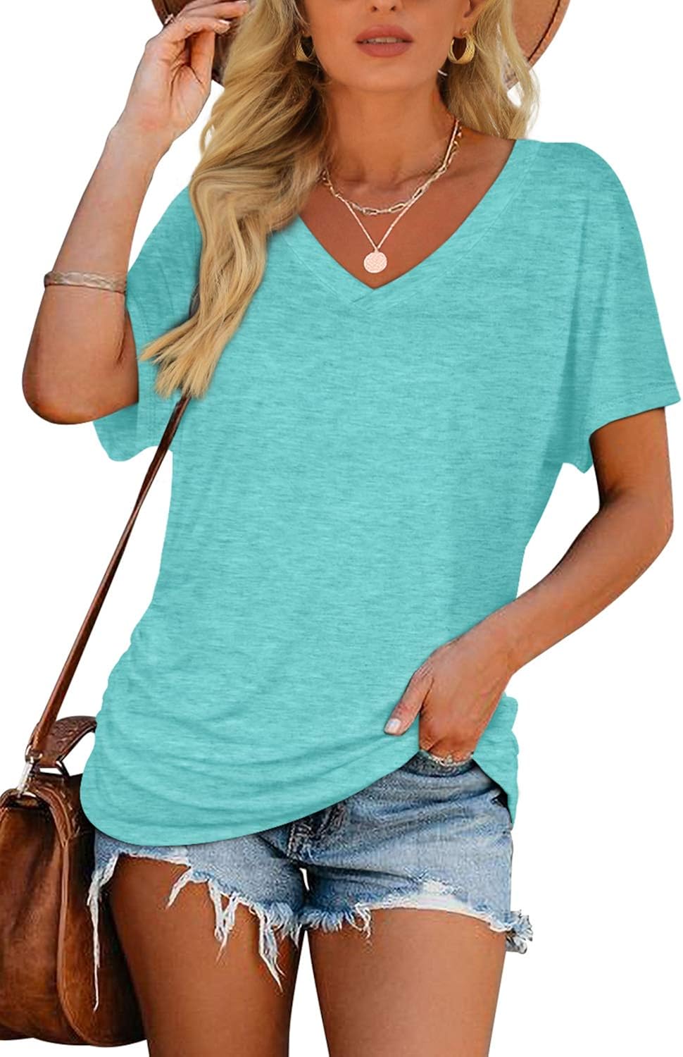 Material: This short sleeve tops for womens casual soft v neck shirts is made of 60%polyester, 35% rayon and 5 %spandex, soft, lightweight, breathable, light-stretch, wrinkle-free and skin-friendly.