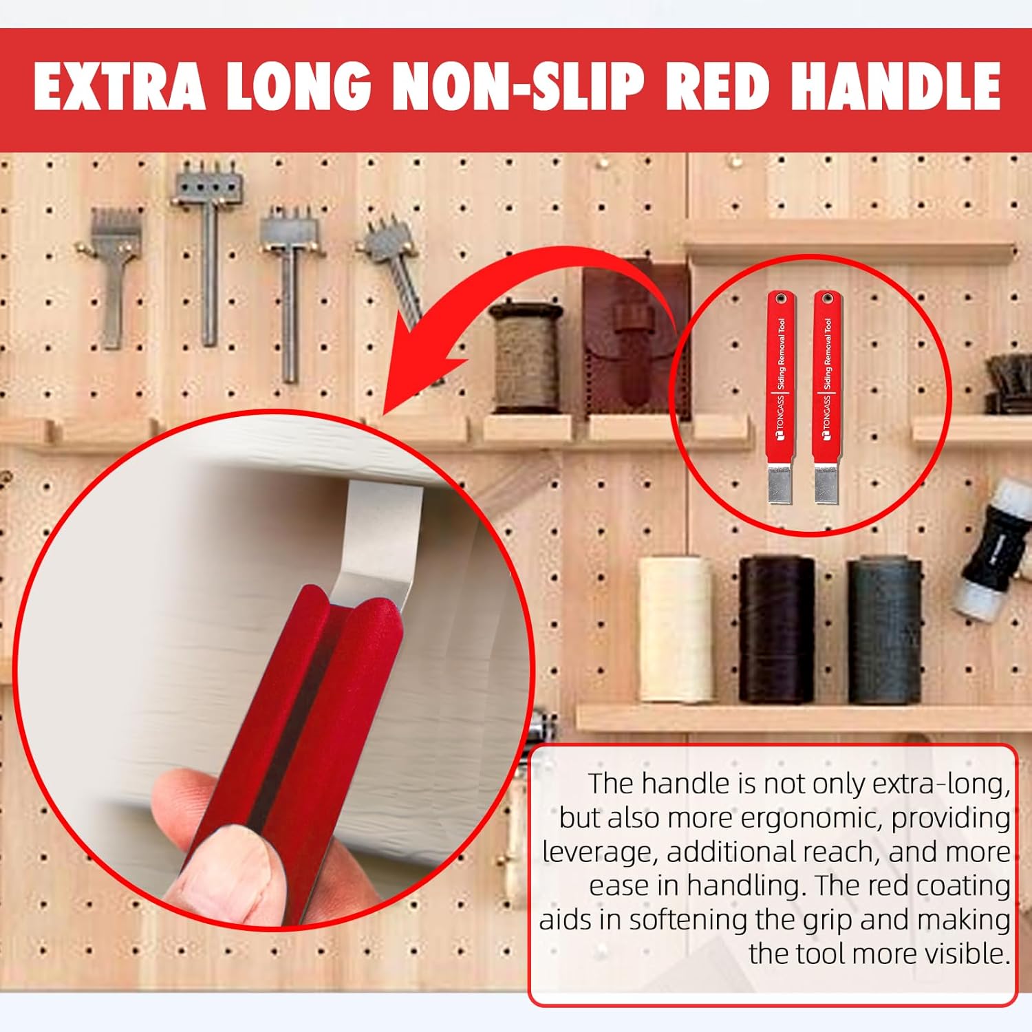 Ergonomic Extra-Long Handle – Featuring a non-slip red handle, this vinyl siding tool provides enhanced grip, comfort, and extra reach. At nearly 2 inches longer than standard tools, it offers better leverage for smoother operation.