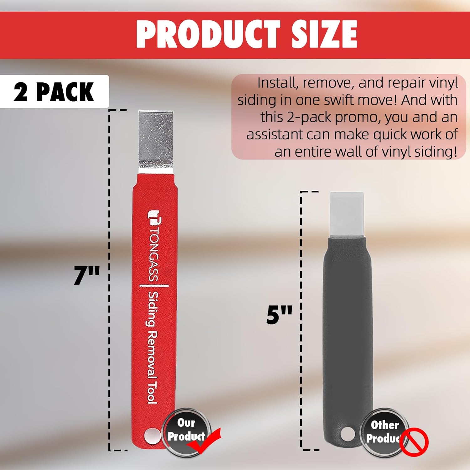 Effortless Vinyl Siding Removal & Installation – Quickly remove, install, or repair vinyl siding in a single move. This 1-pack siding hand tool set allows you and a helper to complete siding projects faster and more efficiently, making it the perfect addition to any toolbox!