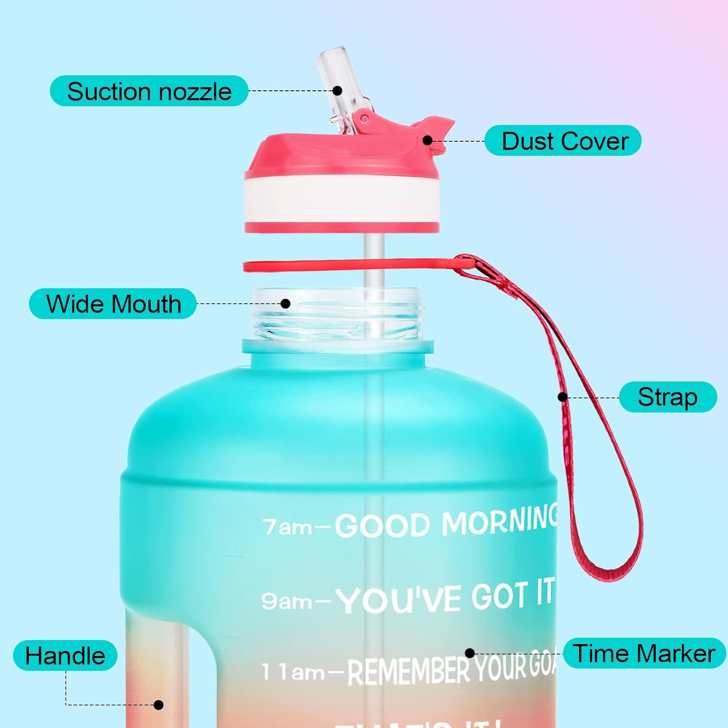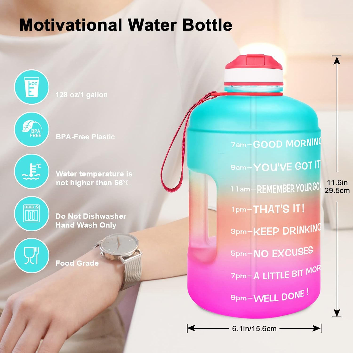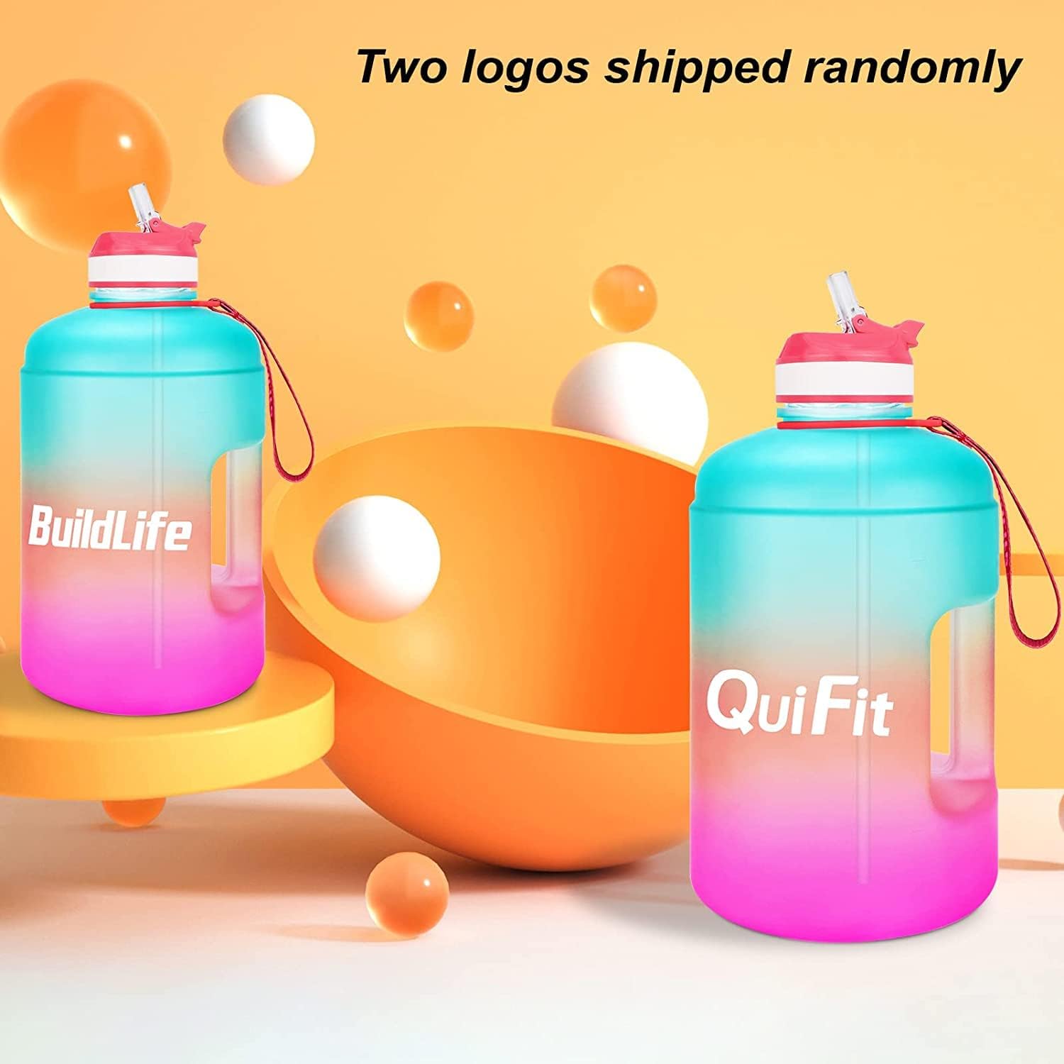 QuiFit Motivational Gallon Water Bottle - with Straw & Time Marker BPA Free Large Reusable Sport Water Jug with Handle for...