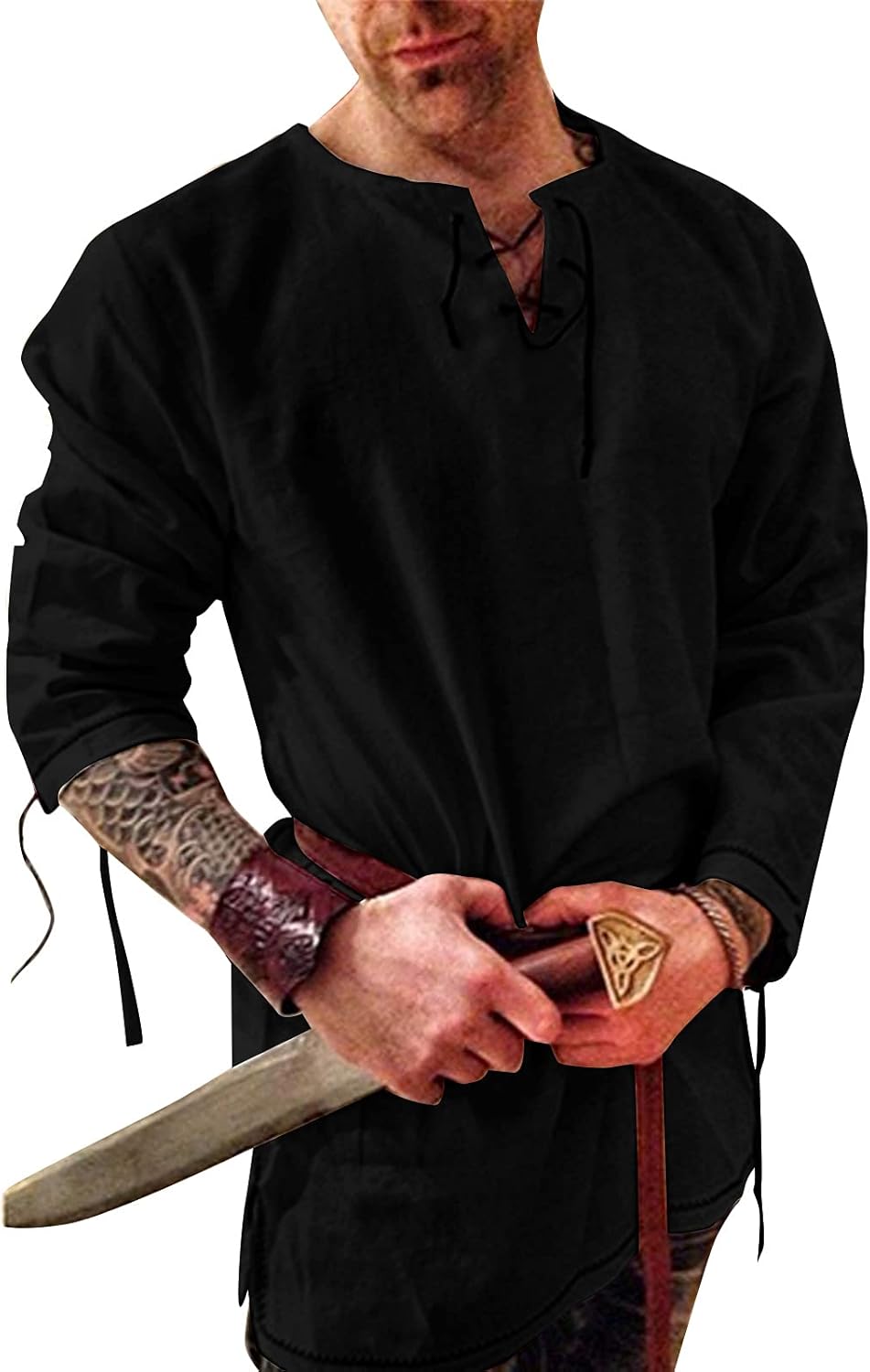 Features:Fashion linen shirts,long sleeve, soft premium cotton, unique ethnic style pattern design, simple style,lightweight, drawstring collar design,solid color,loose fit.
