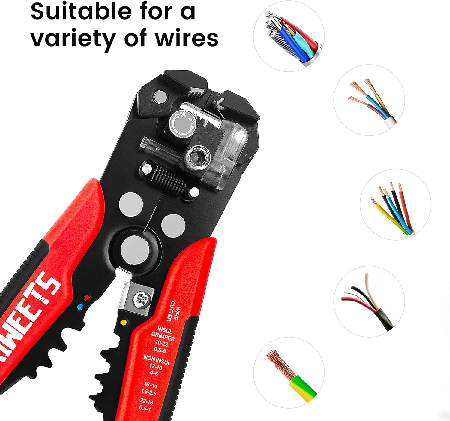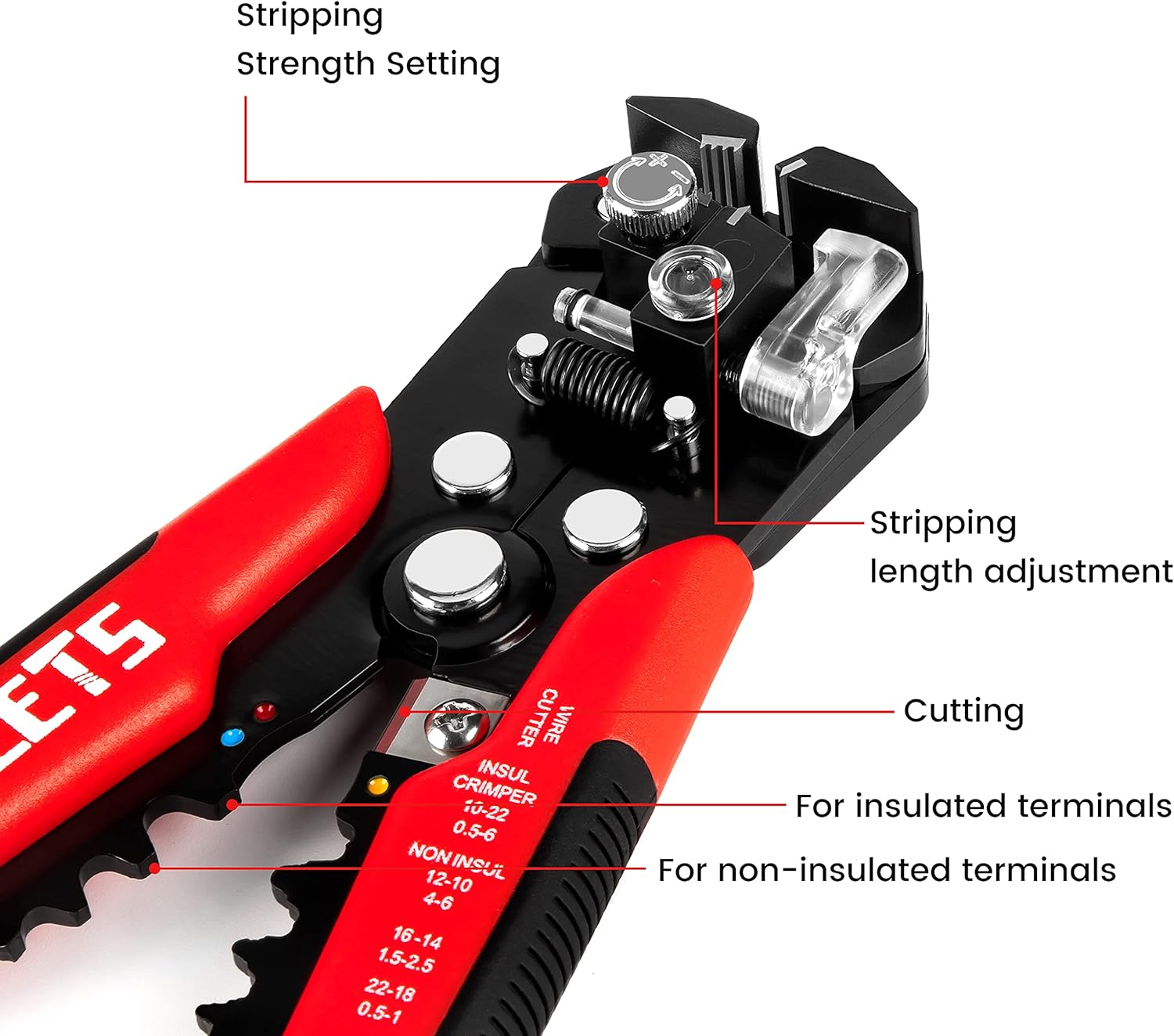 Self Adjusting Wire Stripper : Strip wire from 10 to 24 AWG with our self-adjusting mechanism