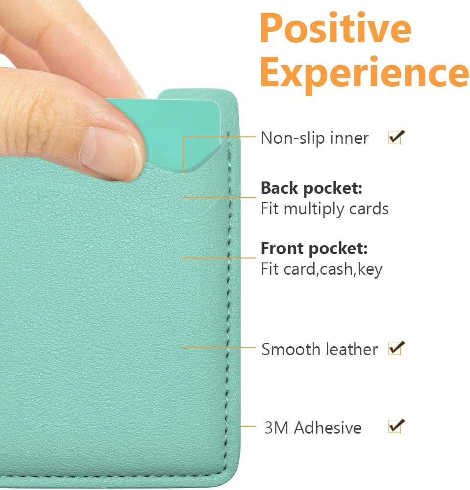 Strong Stickiness: Each phone wallet pocket uses a high-quality 3M adhesive tape backing for a strong, firm, long-lasting hold. It won't lose strength due to pocket heat, light moisture or sweat, and it won't leave a sticky residue if you choose to remove.