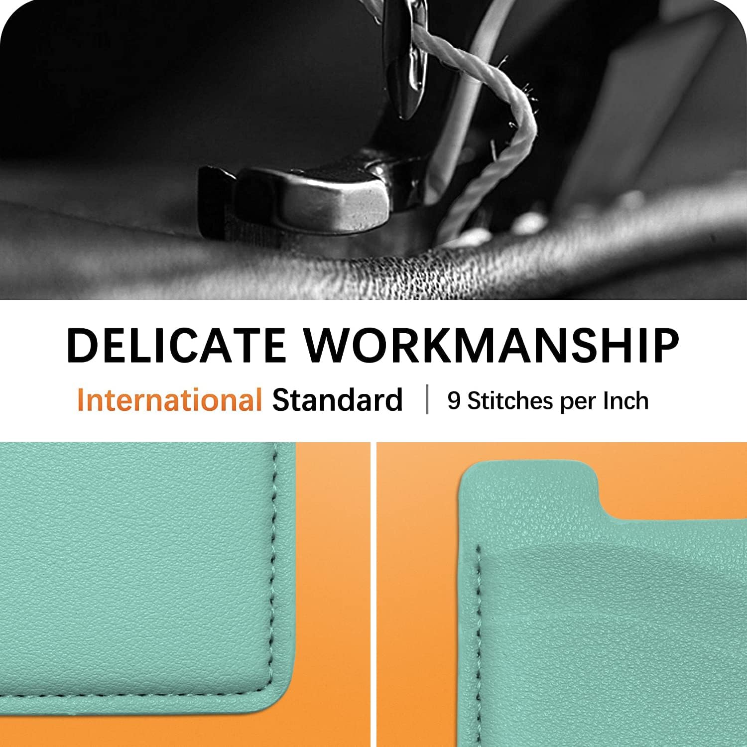 Premium Durable Leather:This phone card holder is made of quality PU leather, which offers a soft touch, luxurious appearance and last longer. Double pocket design allows you to classify your items easily.