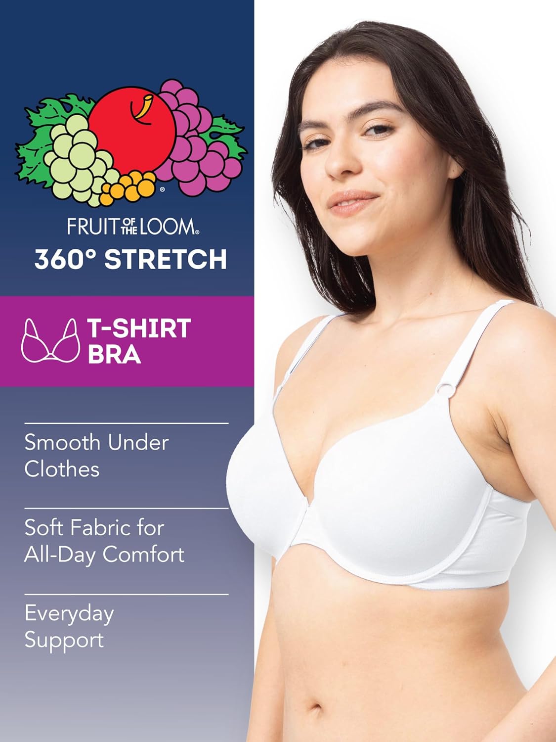 Fruit of the Loom Women's Smooth Cotton T-Shirt Bra Pack - Ultra-Soft, Flexible, and Invisible Under Tees