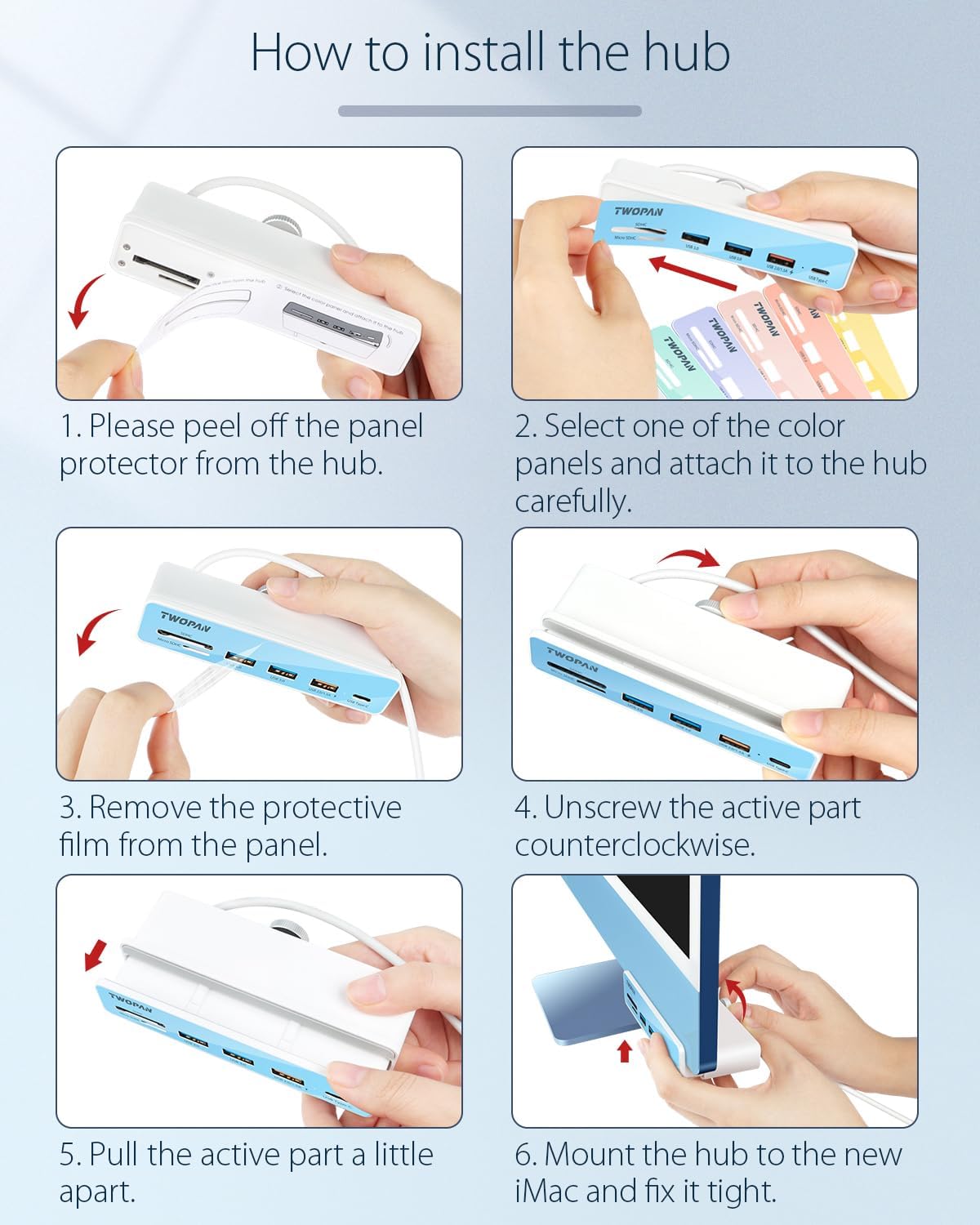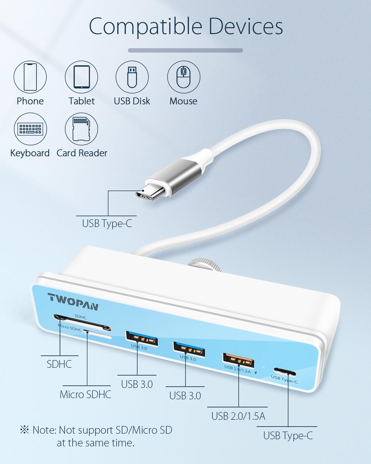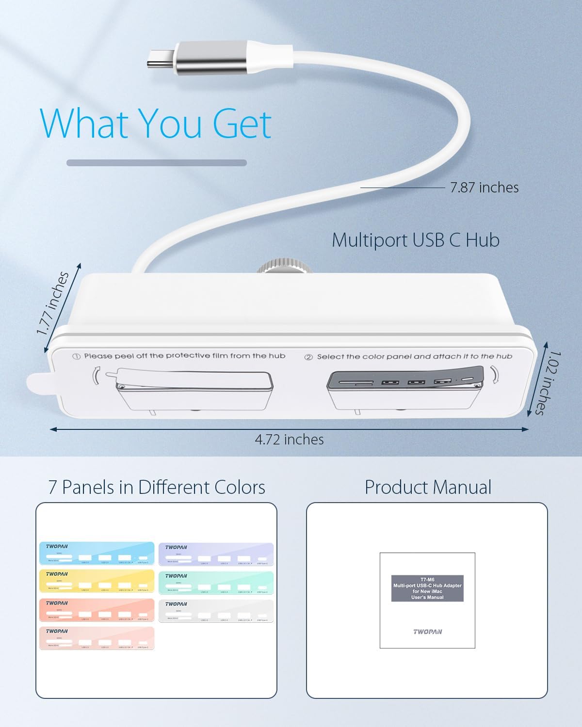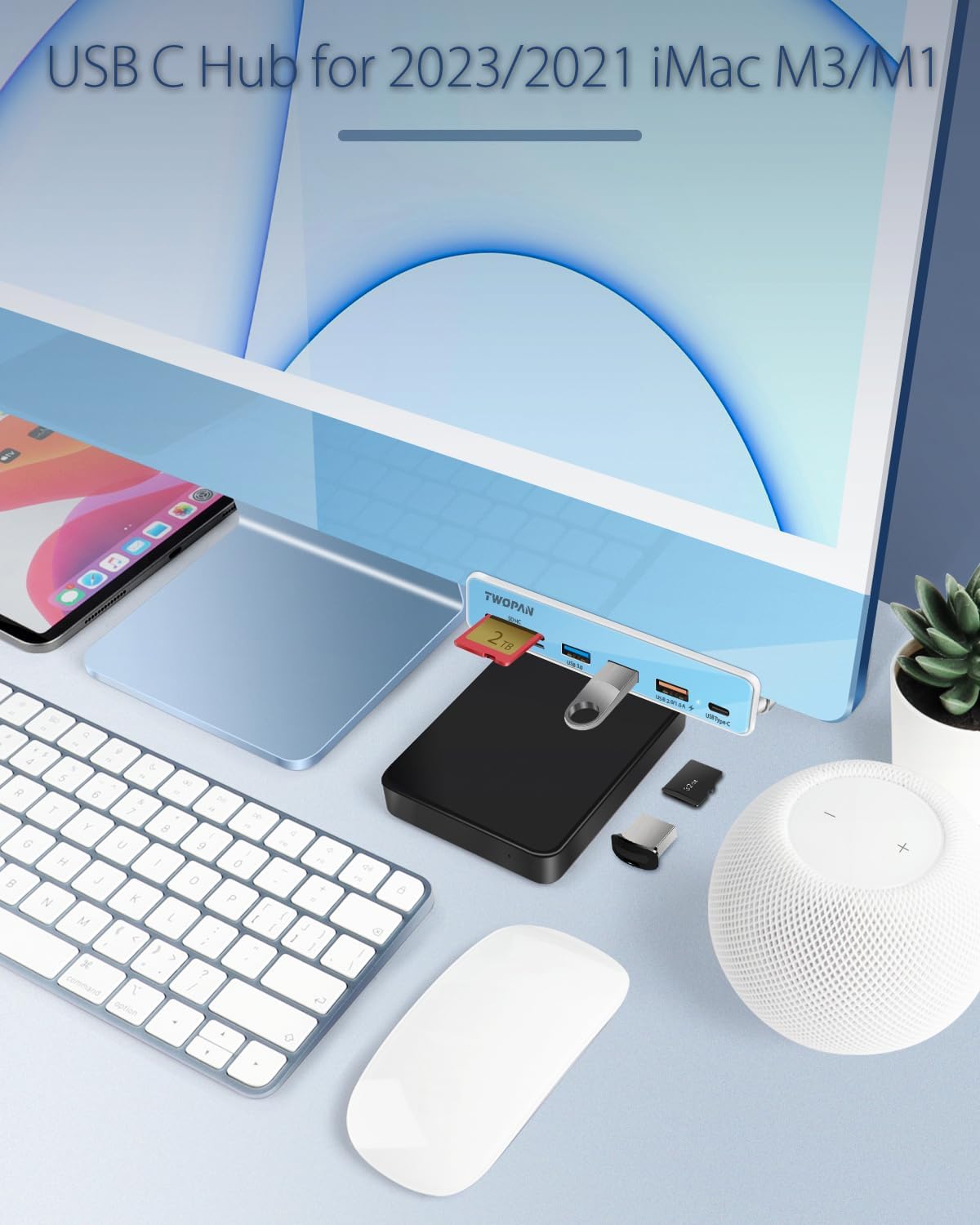 TWOPAN USB C Hub Multiport Adapter for iMac M4/M3/M1, 6 in 1 iMac 2024/2023/2021 USB C Port Hub with USB 3.0 Ports, SD/Mic...