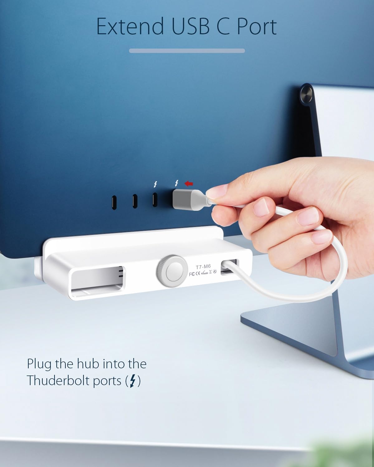 6-in-1 iMac USB C Hub: Upgrade your iMac with our versatile 6-in-1 iMac USB C Hub. With this usb port hub, you gain easy access to 6 essential ports, eliminating the hassle of limited connectivity. Expand your iMac Thunderbolt Port with USB Type-C port, USB 3.0 ports, USB 2.0 port, SD and Micro SD socket